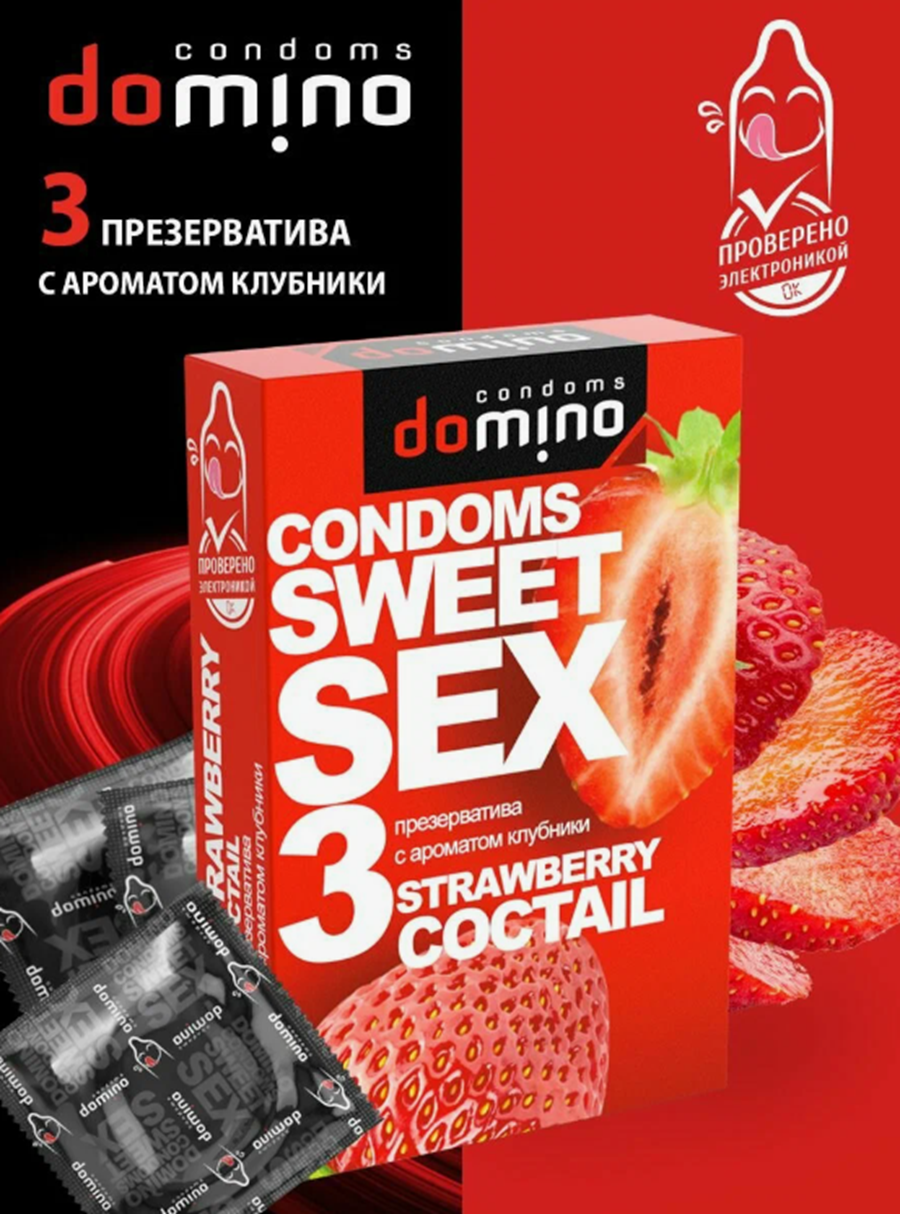 Презервативы для орального секса со смазкой и ароматом клубники. В каждой фирменной упаковке содержится 3 гладких презерватива.