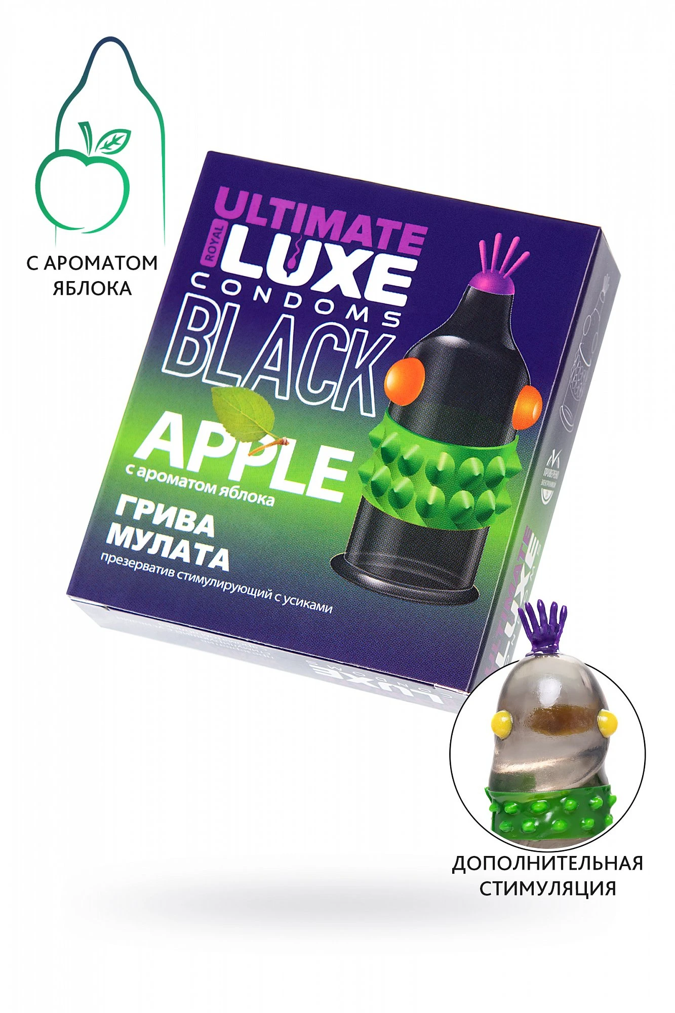 Большой и черный… Кто это? Пришло время воплотить потайные желания с участием мулата. Заставь ее содрогаться от вожделения, когда она увидит презерватив Luxe BLACK ULTIMATE Грива Мулата. Многообещающий рельеф стимулирует самые чувствительные зоны, а свежий аромат яблока пробуждает фантазию. Широкое кольцо с мягкими шипами и шарики гарантированно сделают секс незабываемым. Пора расширить границы наслаждения. Качественный черный латекс. Силиконовая смазка. Ребристый рельеф. Протестировано электроникой. Размер: длина 18 см, диаметр 5.2 см, толщина стенок 0,06 мм.