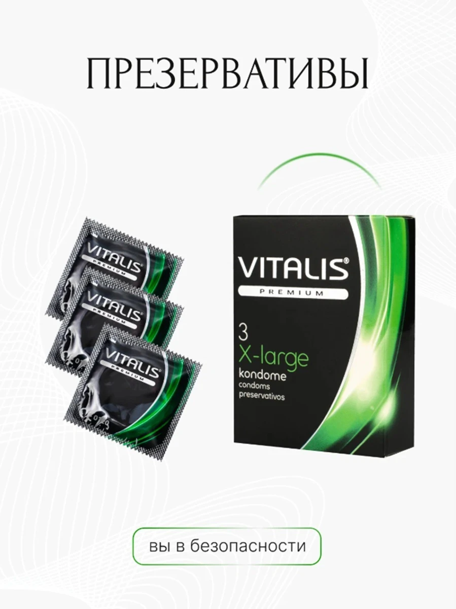 Нужен размер побольше? Презерватив увеличенного размера. Король нна рынке презервативов! Презерватив из натурального каучукового латекса, увеличенного размера, со смазкой и накопителем. Размер: ширина 5,7 см длина >19 см толщина 0.07 мм Смазка силикон. Форма цилиндрическая. Качество: ISO 4074:2002 В упаковке 3 презерватива.