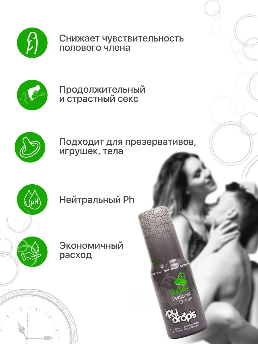 Длительный секс, доставляющий удовольствие станет фундаментом крепких отношений в паре. Задерживает семяизвержение полового органа, снижая его чувствительность за счет сужения сосудов. Наносить на головку и сосуд , который идет вдоль пениса снизу. Совместим с презервативами, не нарушает их структуру. Гипоаллергенен, не оставляет пятен. Объем: 50 мл.