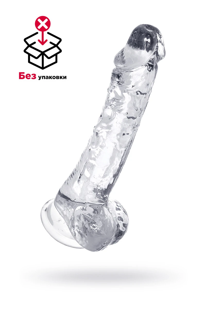 Реалистичный фаллоимитатор сделан из высококачественного материала. Необычный дизайн в виде прозрачного пениса создает влажный глянцевый эффект и делает сексуальную игру особенно пикантной. Благодаря наличию мошонки и присоски подходит для вагинального и анального проникновения. Рельефная головка оказывает дополнительную стимуляцию зоны G и эрогенных точек. Размер фаллоимитатора позволяет получать удовольствие и практиковать оральные ласки. Использовать только с лубрикантами на водной основе. Товар без коробки! Упаковка - прозрачный пакет.