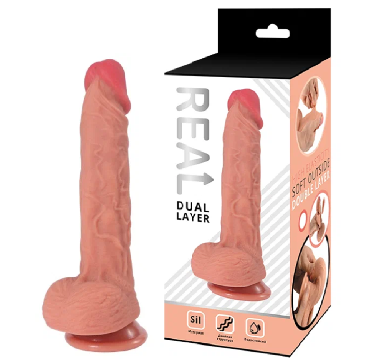 Real Dual Layer - реалистичный фаллоимитатор из высококачественного безопасного силикона. Современная технология изготовления обеспечивает игрушке двойную структуру. Плотный стержень покрыт слоем нежного и приятного на ощупь материала. Такая структура материала позволяет добиться ощущения живой кожи, сохранив при этом гигиеничность и износостойкость силикона. Имитация имеет мягкую округлую головку, гибкое покрытое венками тело, упругую естественной формы мошонку. Присоска в основании позволяет надежно закрепить игрушку на любой гладкой поверхности или использовать в качестве страпона. Размер: общая длина 23 см, глубина проникновения 17 см, диаметр 4 см. Для более комфортного использования рекомендуем приобрести смазку на водной основе и очищающий спрей Clear Toy 100 мл для обработки изделия.