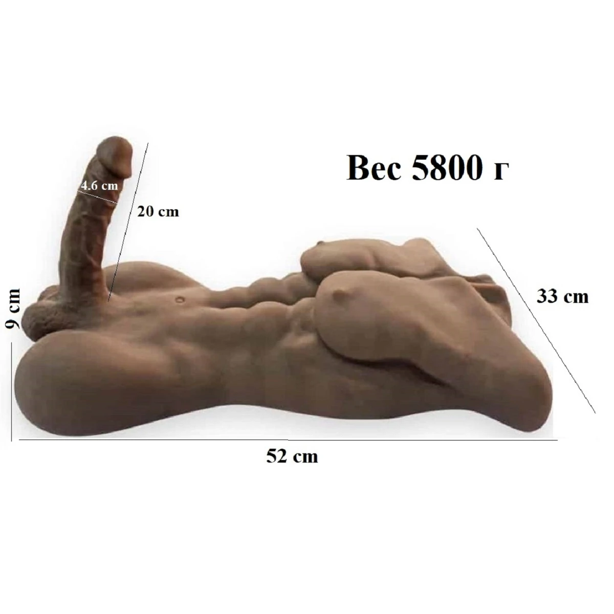 Реалистичный мастурбатор-накаченный мужской торс Vincent мулат с большим красивым мужским достоинством. Все мышцы прорисованы, кожа невероятно мягкая и приятная на ощупь. Упругий возбуждённый член можно изгибать в любое положение, доставит множество ярких оргазмов, а тугое и узкое анальное отверстие создает реальные ощущения. Мастурбатор универсален, его может использовать как женщина, так и мужчина. Перед использованием промойте игрушку теплой водой без мыла. Затем обработайте специальным средством для очистки секс-игрушек. Цвет: телесный. Размеры: длина тела 54 см, ширина 36 см, длина фаллоса (без мошонки) 19 см, диаметр 4,3 см. Для более комфортного использования рекомендуем приобрести смазку на водной основе и очищающий спрей Clear Toy 100 мл для обработки изделия.