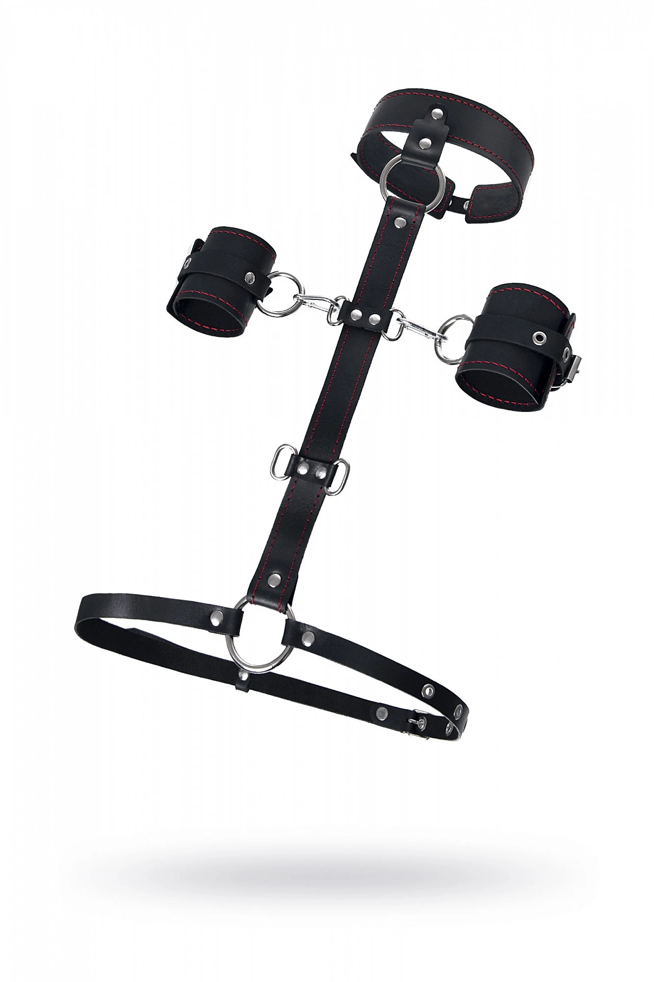 Готовы играть по-взрослому? Хотите избавиться от искушения? Просто поддайтесь ему с Pecado BDSM! Набор для бандажа состоит из сбруи для фиксации шеи и пары наручников с контрастной строчкой красного цвета, всё это в фирменной деревянной коробке Pecado BDSM. Кожаная сбруя, состоит из ошейника соединенного с поясом на ремне. Два ряда металлических колец позволяют зафиксировать руки партнера в нужном положении с помощью пристегивающихся наручников. Однослойные кожаные наручники с контрастной строчкой красного цвета могут стать стильным аксессуаром на «свободных» руках. Кольца на ошейнике и поясе позволят присоединить и другие аксессуары при помощи карабинов и экспериментировать с позициями и ощущениями. С этим комплектом расширить возможности и способы фиксации проще простого! Варианты и комбинации ограничения свободы партнера зависят от вашей фантазии и желаний. Ширина наручников 6,5 см, длина наручников 20 см.