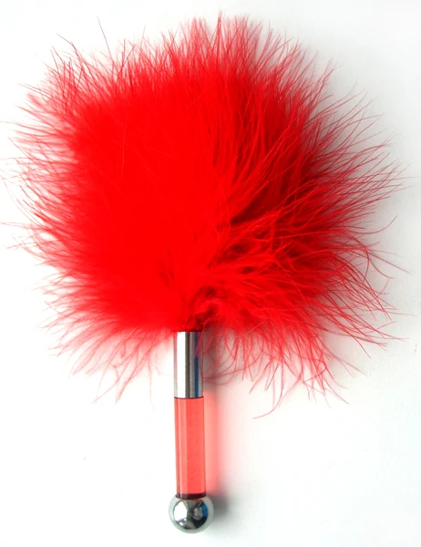 Щекоталка с натуральными перьями красная 17 см