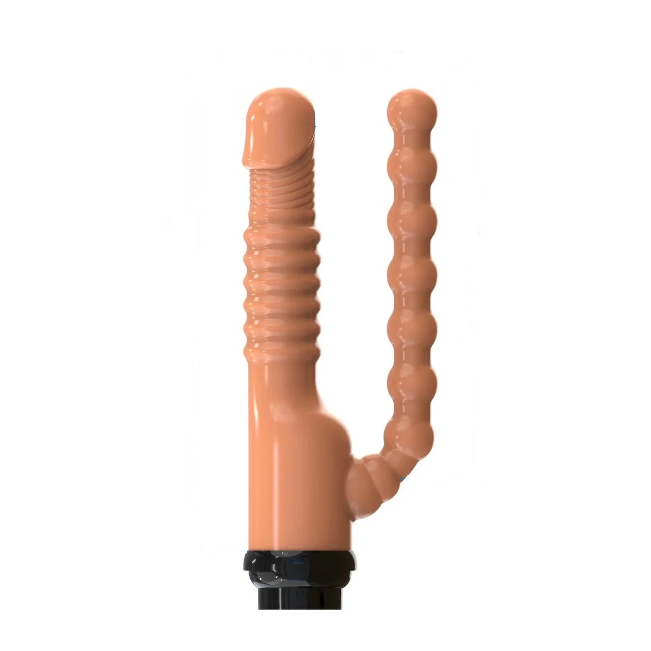 Рельефная сменная насадка для секс-машины предназначена для двойного проникновения. Можно использовать отдельно в качестве самостоятельной игрушки. Или Вы можете насладиться мощной вибрацией, подключив насадку к Секс-машине. Материал: силикон. Цвет: телесный. Размер: длина 18 см, диаметр фаллоса 2,7 см, диаметр анального стимулятора 2 см. Для более комфортного использования рекомендуем приобрести смазку на водной или силиконовой основе и очищающий спрей Clear Toy 100 мл для обработки изделия