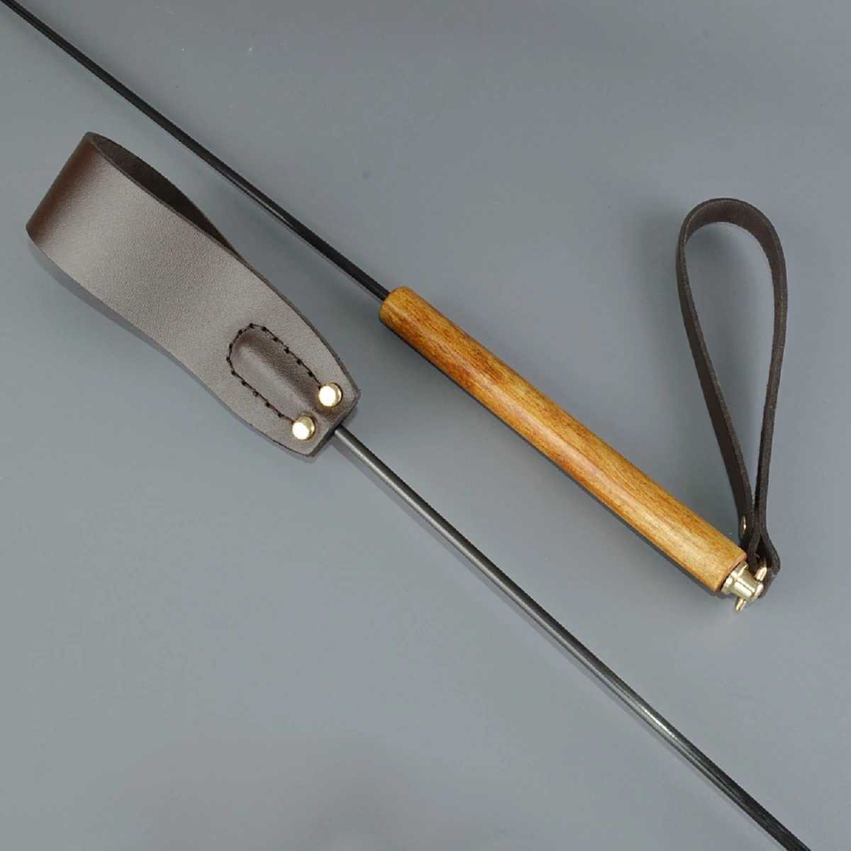 Стек из серии Эко представлен в виде роскошного, изящного изделия коричневого цвета. Петлеобразная хлопушка стека изготовлена из натуральной кожи высокого качества, располагается на конце гибкого, но прочного хлыста. Комфортное использование девайса обеспечивает рукоять из дерева. Ремешок-петля, находящийся на рукояти, позволяет дополнительно фиксировать стек на запястье. Размер: длина 69 см, длина рукояти 14 см без темляка, длина хлопушки 13 см, ширина хлопушки 3,8 см. Цвет коричневый.