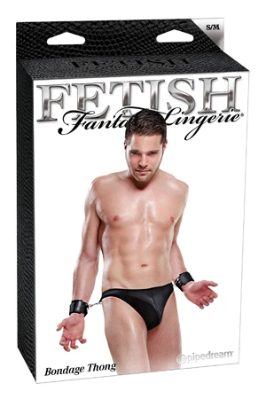 Костюм раба включает в себя: открытые стринги и манжеты прикрепленные к стрингам на карабинах. Размер S\M. Цвет: черный.