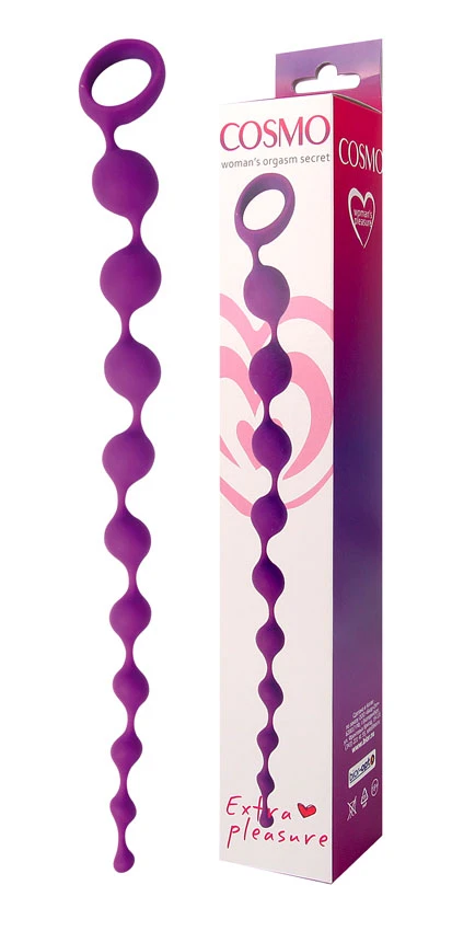 Откройте мир особого удовольствия с анальной цепочкой серии «COSMO». Интимный аксессуар состоит из нескольких элементов и выполнен в форме классической анальной «елочки», что позволяет вводить его легко и комфортно. Специальное кольцо ограничитель позволяет контролировать глубину проникновения. Для более комфортного использования рекомендуется приобрести специальный лубрикант на водной основе. Секс-игрушка изготовлена из гипоаллергенного силикона, имеет мягкую приятную на ощупь бархатистую структуру, выполнена в привлекательном фиолетовом цвете. Литая форма упрощает процесс ухаживания за изделием, поскольку между деталями цепочки нет зазоров, в которых могут скапливаться ненужные частицы. Чистить аксессуар необходимо с помощью очищающего спрея Сleat Toy 100 мл.