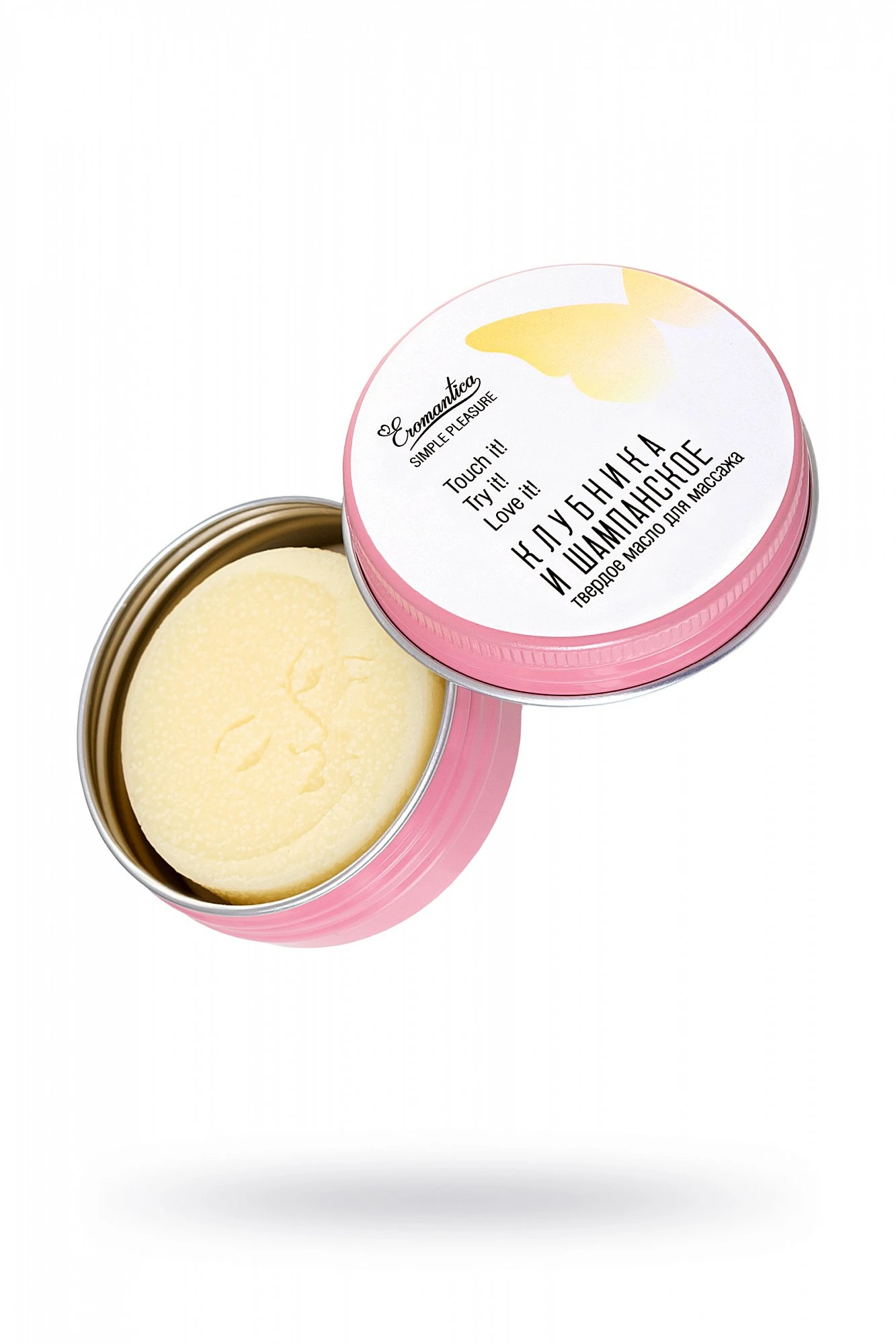 Коллекция косметики для массажа Eromantica Simple Pleasure — это натуральные массажные масла в удобном формате. С ними ты можешь создавать романтическую атмосферу и наслаждаться роскошным уходом в любом месте и в любое время. Твердое масло для массажа Eromantica Клубника и шампанское — релакс и уход в удобном формате. Как использовать: проведи плиткой по телу мягкими массирующими движениями.