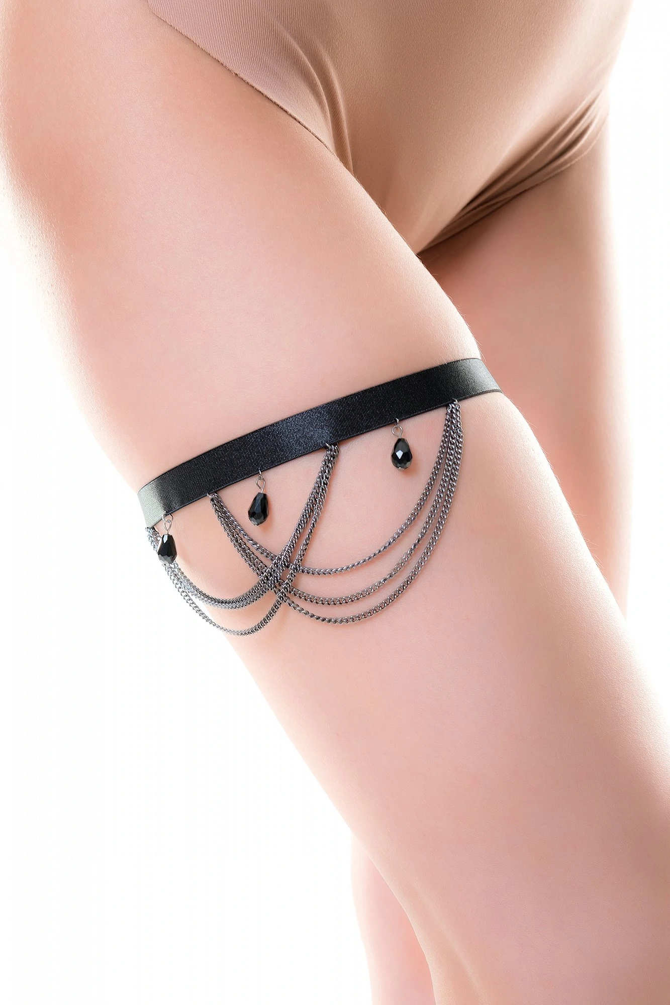 Стрепы - уникальный аксессуар, способный добавить сексуальных акцентов не только в эротическом, но и в повседневном образе! Украшение на ногу Kris Игривые капельки из черных страз и переплетения тонких металлических цепочек на эластичной ленте. В повседневном образе сочетайте с шортами или короткими юбками и платьями. Материал: текстиль. Цвет: черный. Размер: универсальный.