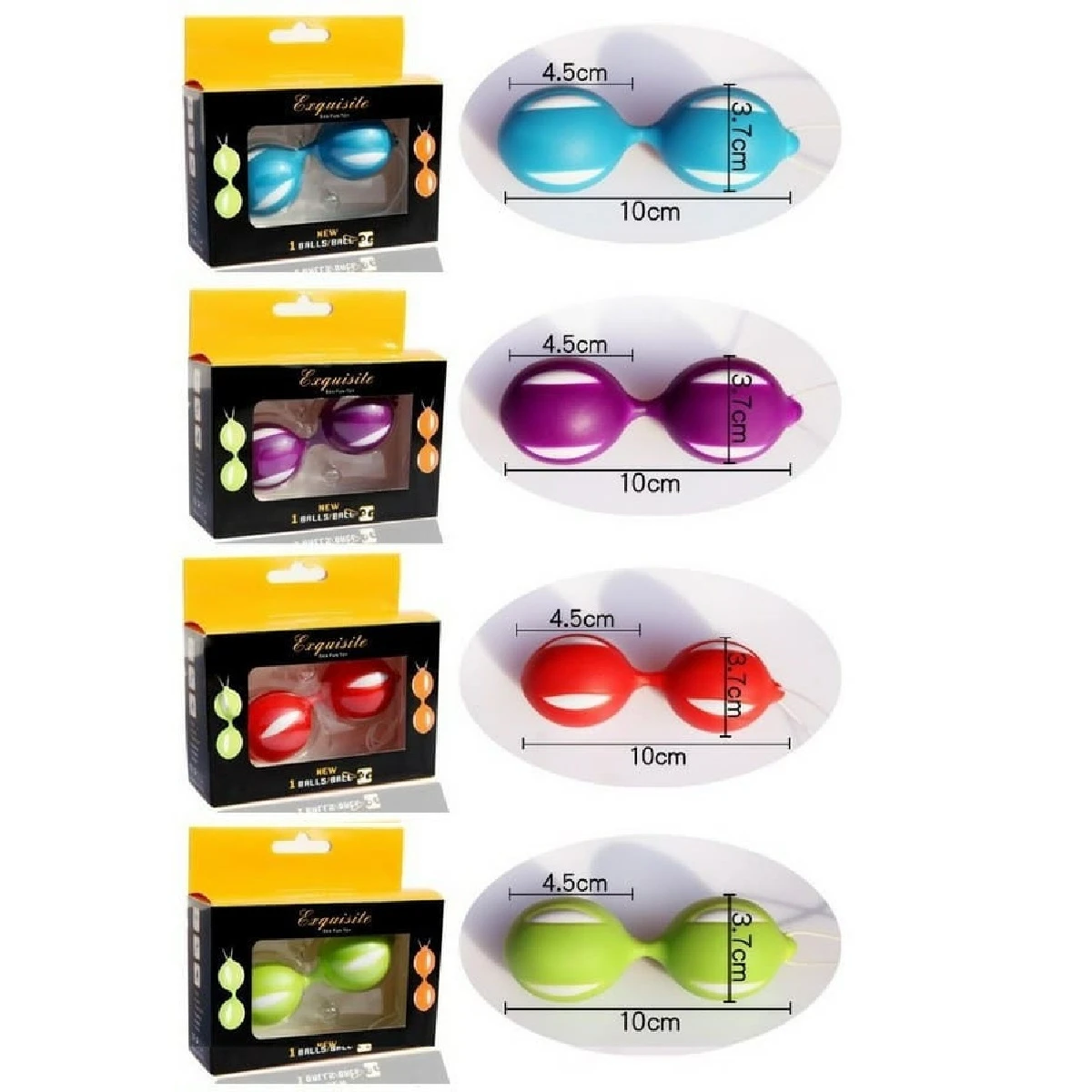 Силиконовые вагинальные шарики со смещенным центром тяжести. Выполнены в эргономичном стиле и имеют рельефную поверхность, что дополнительно будет стимулировать Ваши эрогенные зоны во время упражнений. Использование шариков позволяет женщине тренировать мышечные стенки влагалища, осуществлять внутренний массаж влагалища, а так же используется для улучшения кровообращения. Материал: силикон. Размер: длина 10 см, длина шарика 4,5 см, диаметр 3,7 см. Цвет: разноцветные. Для более комфортного использования рекомендуем приобрести смазку на водной основе и очищающий спрей Clear Toy 100 мл для обработки изделия.