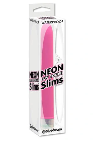 Вибратор Neon Slim розового цвета, выполнен из пластика, покрытого материалом Luv Touch бархатистого на ощупь. Длина вибромассажёра 13 см, диаметр 2 см. Материал: пластик.
