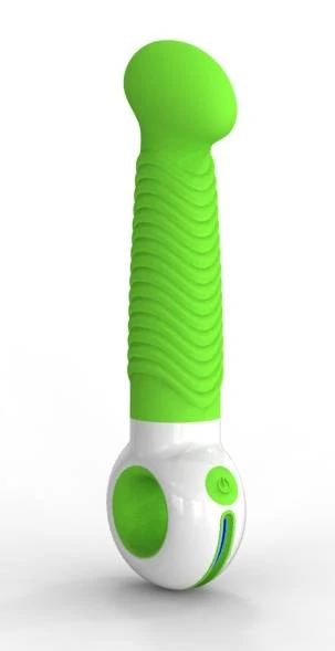 Вибратор необычного дизайна, созданный для тех, кто любит ощущать ребристую поверхность, а также увеличенную головку-подушечку для стимуляции точки G. Характеристики: Материалы: АБС/силикон. Три уровня интенсивности и четыре уровня вибрации. Сенсорный индикатор. Сильный и тихий мотор Удобное кольцо для введения и панель управления Все можно делать одной рукой. Размер: длина 18 см, диаметр 5,5 см. Цвет: зелено-белый. Тип батареек: 2 х ААА