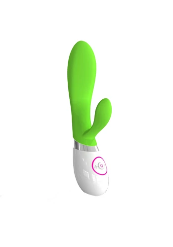 Его два отдельных виброустройства, обеспечивают сильные, тихие и интенсивные ритмические вибрации. Этот "кролик" будет нежно ласкать ваши прелести. Удобный, стильный и компактный. Четыре режима вибрации и три пульсации. Сенсорный индикатор. Материал: 100% медицинский силикон и АБС. Цвет: зеленый\белый. Водонепроницаемый (может использоваться в душе). Батарейки: 2*ААА (закажите отдельно). Размеры: длина 19,8 см, ширина 4,1 см, высота 3,8 см.