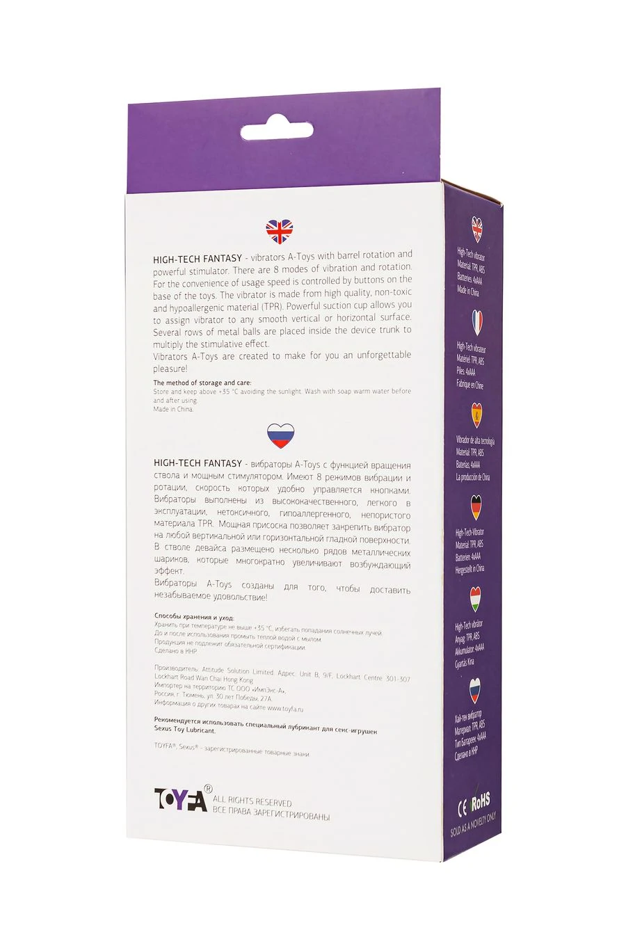High-Tech fantasy - вибраторы A-Toys с функцией вращения ствола и мощным клиторальным стимулятором. Имеют 8 режимов вибрации и 4 ротации, скорость которых удобно управляется кнопками на рукояти игрушки. Вибраторы выполнены из высококачественного, легкого в эксплуатации, нетоксичного, гипоаллергенного, непористого материала TPR. Мощная присоска позволяет закрепить вибратор на любой вертикальной или горизонтальной гладкой поверхности. В стволе девайса размещено несколько рядов металлических шариков, которые многократно увеличивают возбуждающий эффект. Вибраторы A-Toys созданы для того, чтобы доставить незабываемое удовольствие! Для более комфортного использования рекомендуем приобрести смазку на водной основе и очищающий спрей Clear Toy 100 мл для обработки изделия.