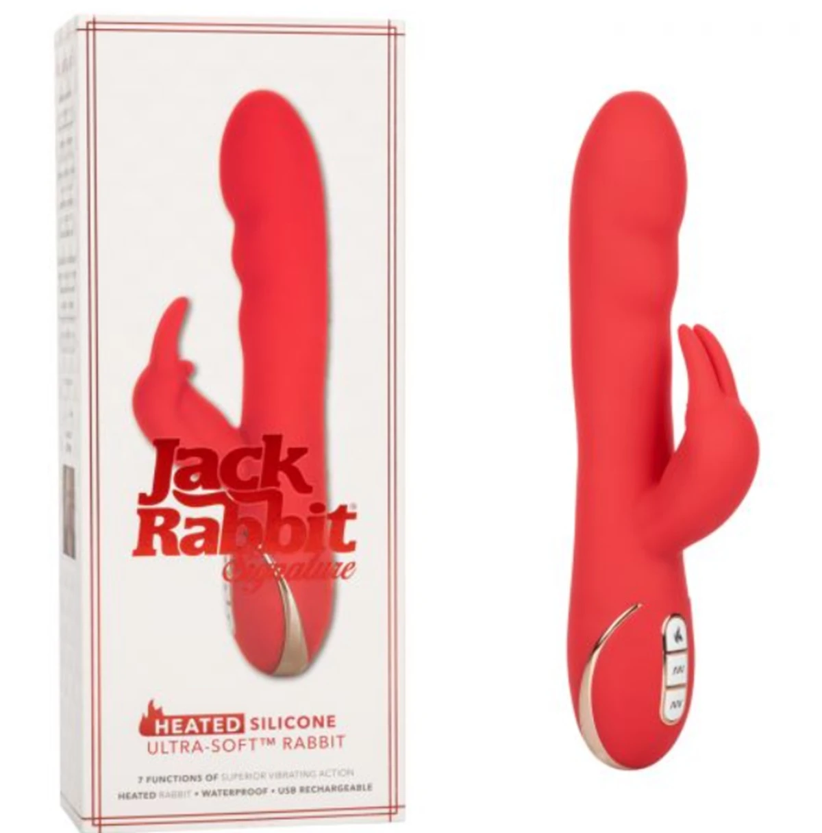 Heated Silicone Ultra-Soft Rabbit - роскошный вибромассажер кролик из двухслойного ультрамягкого материала класса Ultra-Soft, с ребристой головкой, клиторальным отростком с ушками и функцией нагрева до приятной температуры 45 градуса Цельсия. Особенностью является мягкий и нежный силикон высшего качества, который создаёт уникальные ощущения от прикосновения и особым образом передает телу вибрации. Два самостоятельных мотора обеспечивают отдельно управление 7 идеальными функциями вибрации. Трехкнопочная панель управления с LED-подсветкой позволяет вам управлять множеством вариантов вибрации. Чтобы включить или выключить, необходимо нажать и в течение трех секунд удерживать верхню кнопку питания. Вибромассажер заряжается через USB. Размер: общая длина 21,5 см, длина рабочей части 12.75 см, диаметр 3,75 см, длина клиторального отростка 5 см, диаметр 2,5 см. Цвет красный. Для более комфортного использования рекомендуем приобрести смазку на водной основе и очищающий спрей Clear Toy 100 мл для обработки изделия.