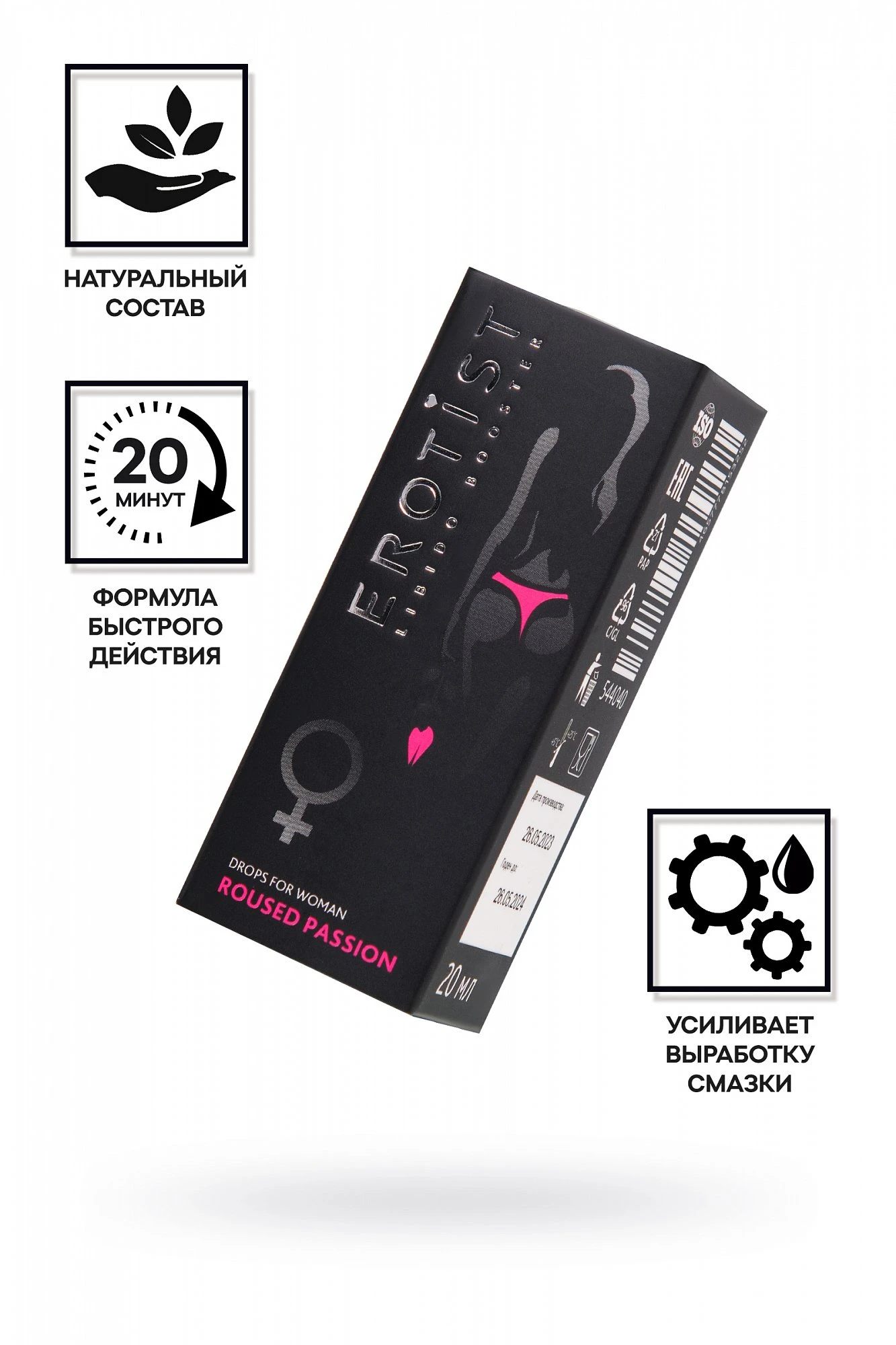 Сделайте свою сексуальную жизнь ярче и разнообразьте ее новыми ощущениями. Возбуждающие капли для женщин Roused Passion вызывают моментально нарастающее желание секса. Активные компоненты пищевой добавки на основе растительного комплекса позволяют добиться возбужденного состояния за считанные минуты. Возбуждающее действие капель уже через 15-20 минут после применения способствует: Росту сексуального влечения, снятию физиологических блоков и психологических ограничений, раскрепощенности в сексе и повышению чувствительности эрогенных зон, захватывающему удовольствию от секса, достижению максимально яркого оргазма, усилению выработки влагалищной смазки. В состав средства входят растительные фитоэстрогены, сходные с женскими половыми гормонами, ответственными за повышение чувствительности эрогенных зон. Капли Roused Passion содержат компоненты, пробуждающие желание и влияющие на эмоции.