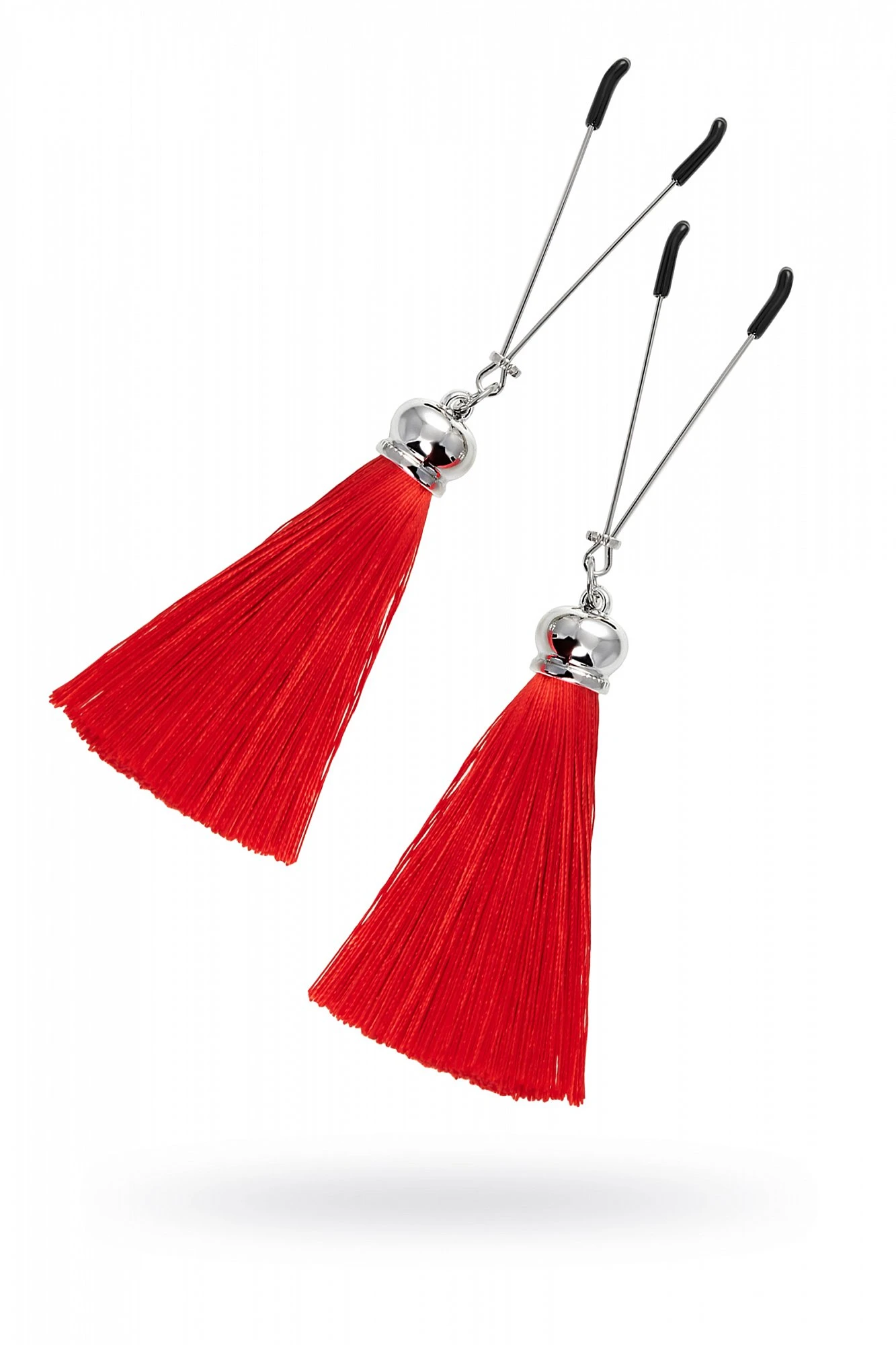 Попробуйте новые, дерзкие ощущения глубокого наслаждения! Зажимы-вилки от Pecado гарантируют смешение ярких чувств от тактильного контакта с нежной кожей сосков. Зажимы выполнены из высококачественных материалов. Металлическая часть компактная, приятная на ощупь. На концах черные резиновые наконечники, для безопасного воздействия на эрогенные зоны. Интенсивность сжатия аксессуара регулируется миниатюрными колечками. В зависимости от личных предпочтений и сценария игры, можно выбрать легкое пощипывание, или сильное сдавливание. Бахрома из натурального шелка, в насыщенном красном цвете, добавляет манящую красоту смелому атрибуту. При каждом соблазнительном покачивании груди, кисточки движутся в пикантном ритме. Также подходит для стимуляции и возбуждении в области половых губ и клитора. Ручная работа. Надежная высококачественная фурнитура. 100% натуральный шелк. Размер: общая длина зажимов 14 см, длина кисточки 8,5 см. Не требуют специального ухода.