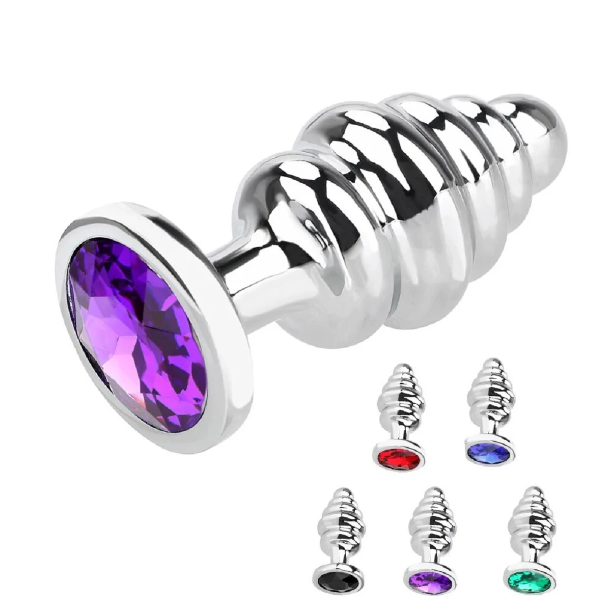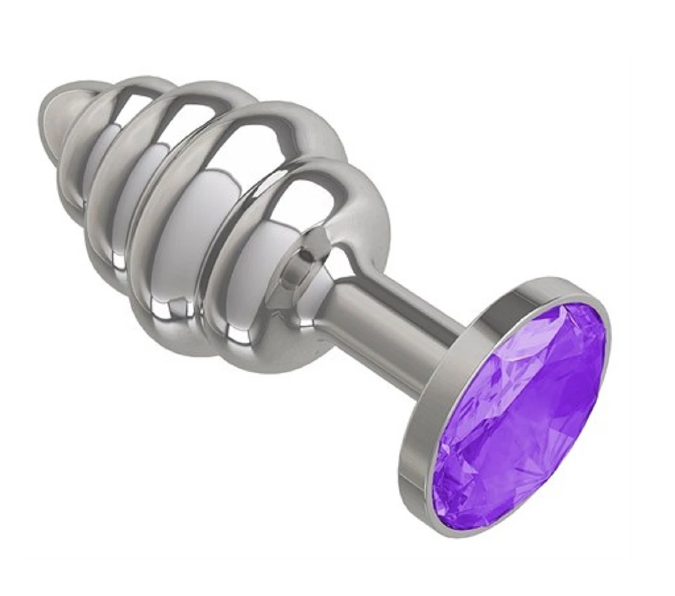 Серебристая анальная пробка с шикарным стразом фиолетового цвета на основании - это изящный способ разнообразить интимные моменты вашей близости и сделать приятный сюрприз для партнера. Используется в качестве интимного украшения.Пробка имеет рельефную поверхность в виде спирали. Изготовлена из хромированной стали. Размер: общая длина 8 см, рабочая 5,5 см, максимальный диаметр 3,4 см. Для более комфортного использования рекомендуем приобрести анальную смазку на водной или силиконовой основе и очищающий спрей Clear Toy 100 мл для обработки изделия.
