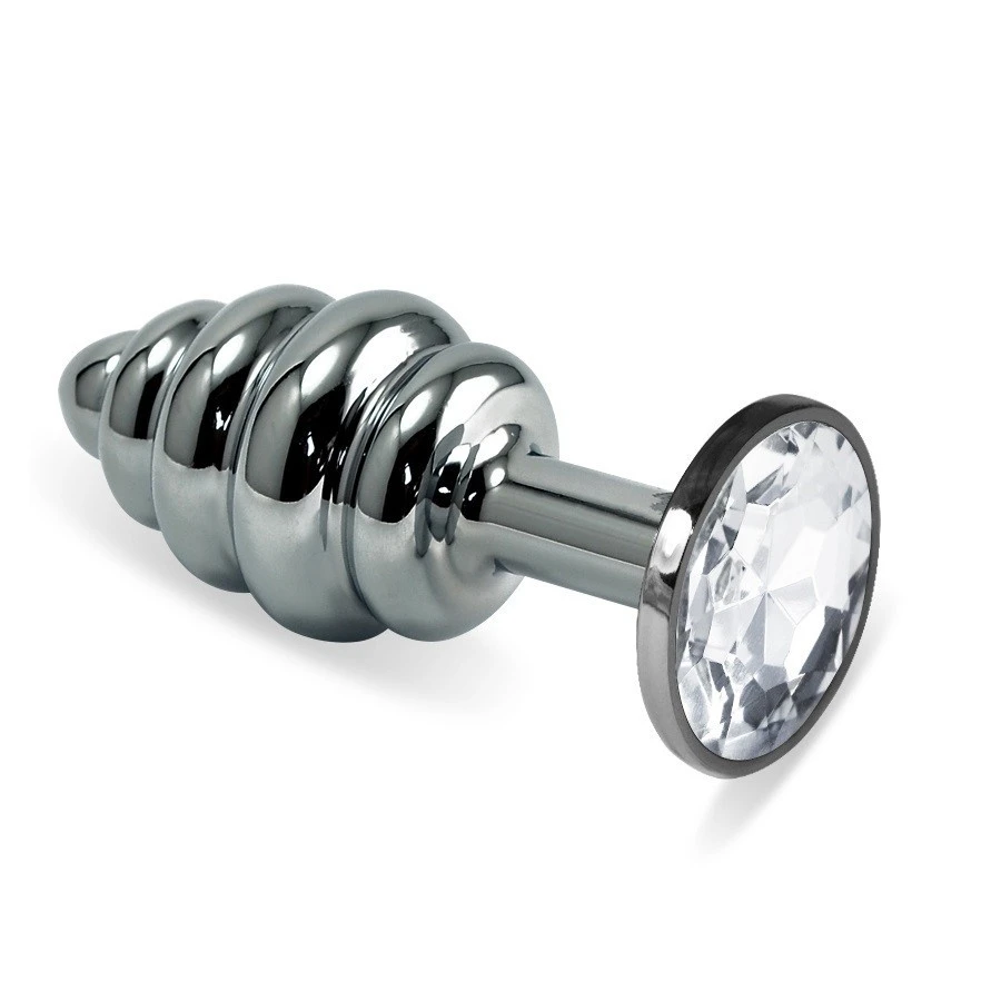 Серебристая анальная пробка с шикарным стразом прозрачного цвета на основании - это изящный способ разнообразить интимные моменты вашей близости и сделать приятный сюрприз для партнера. Используется в качестве интимного украшения.Пробка имеет рельефную поверхность в виде спирали. Изготовлена из хромированной стали. Размер: общая длина 8 см, рабочая 5,5 см, максимальный диаметр 3,4 см. Для более комфортного использования рекомендуем приобрести анальную смазку на водной или силиконовой основе и очищающий спрей Clear Toy 100 мл для обработки изделия.