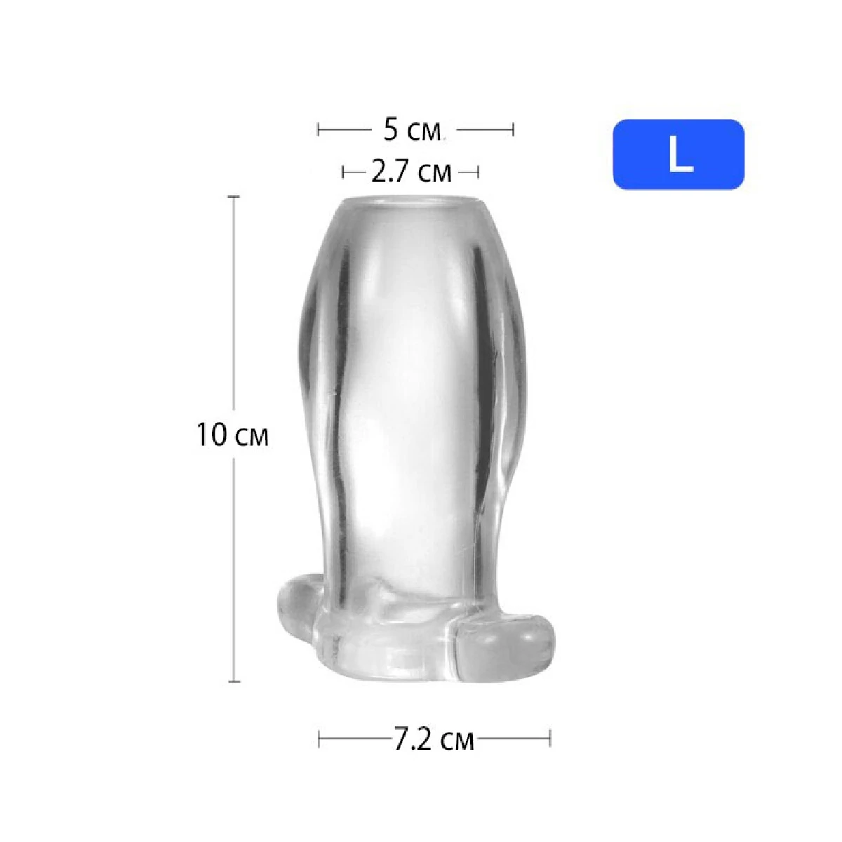 Полужесткий анальный тоннель-расширитель, предназначен для разного рода игр. Игрушка анатомичной, конусообразной формы имеет специальный ограничитель для безопасного применения. Полупрозрачный гелевый материал, гладкий и достаточно мягкий для того, чтобы легко проскользнуть внутрь, но, в то же время, в меру плотный, чтобы держать форму. Анальный тоннель подходит для опытных пользователей и любителей фистинга, дарит чувство невероятного расширения и растяжения. Цвет: прозрачный. Размер: длина 10 см, диаметр 4,8 см, диаметр тоннеля 2,9 см. Для более комфортного использования рекомендуем приобрести смазку на водной основе и очищающий спрей Clear Toy 100 мл для обработки изделия.