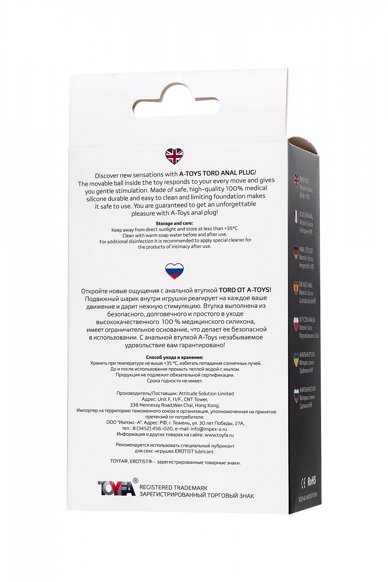 Откройте новые ощущения с анальной втулкой Tord от A-Toys! Подвижный шарик внутри игрушки реагирует на каждое ваше движение и дарит нежную стимуляцию. Втулка выполнена из безопасного, долговечного и простого в уходе высококачественного 100 % медицинского силикона, имеет ограничительное основание, что делает ее безопасной в использовании. Размер: общая длина 10,5 см, рабочая длина 8,5 см, диаметр 1-3,8 см. Цвет: черный. Для более комфортного использования рекомендуем приобрести смазку на водной основе и очищающий спрей Clear Toy 100 мл для обработки изделия.