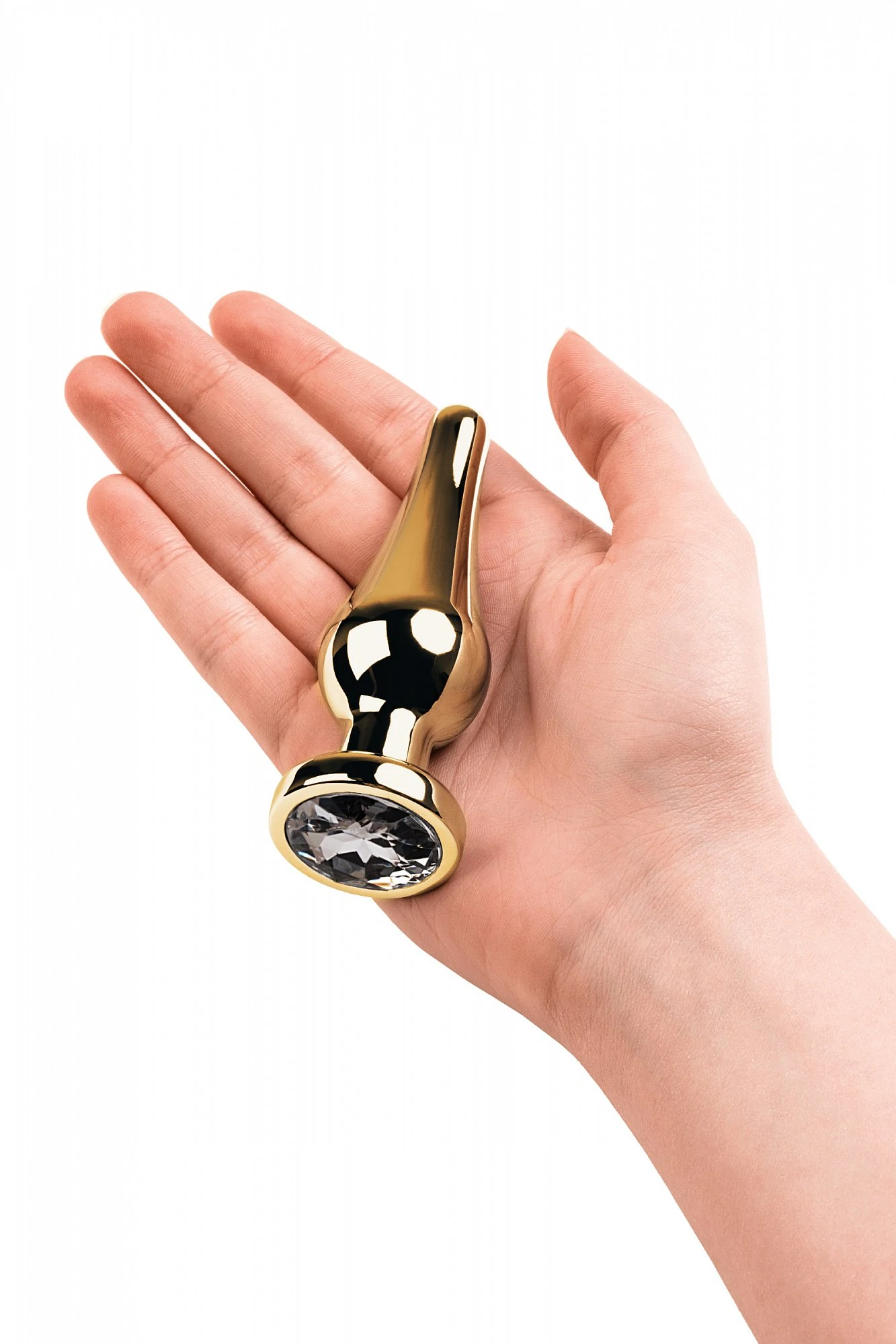 Золотистая втулка в виде наконечника стрелы со стразом цвета алмаз. Идеальная форма для ввода и удерживания внутри. Вес: 95 гр.