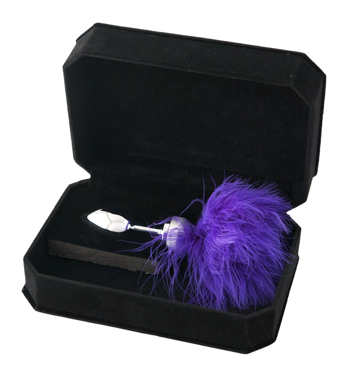 Анальная втулка маленькая с фиолетовой опушкой в коробке. Для более комфортного использования рекомендуем приобрести смазку на водной основе и очищающий спрей Clear Toy 100 мл для обработки изделия.