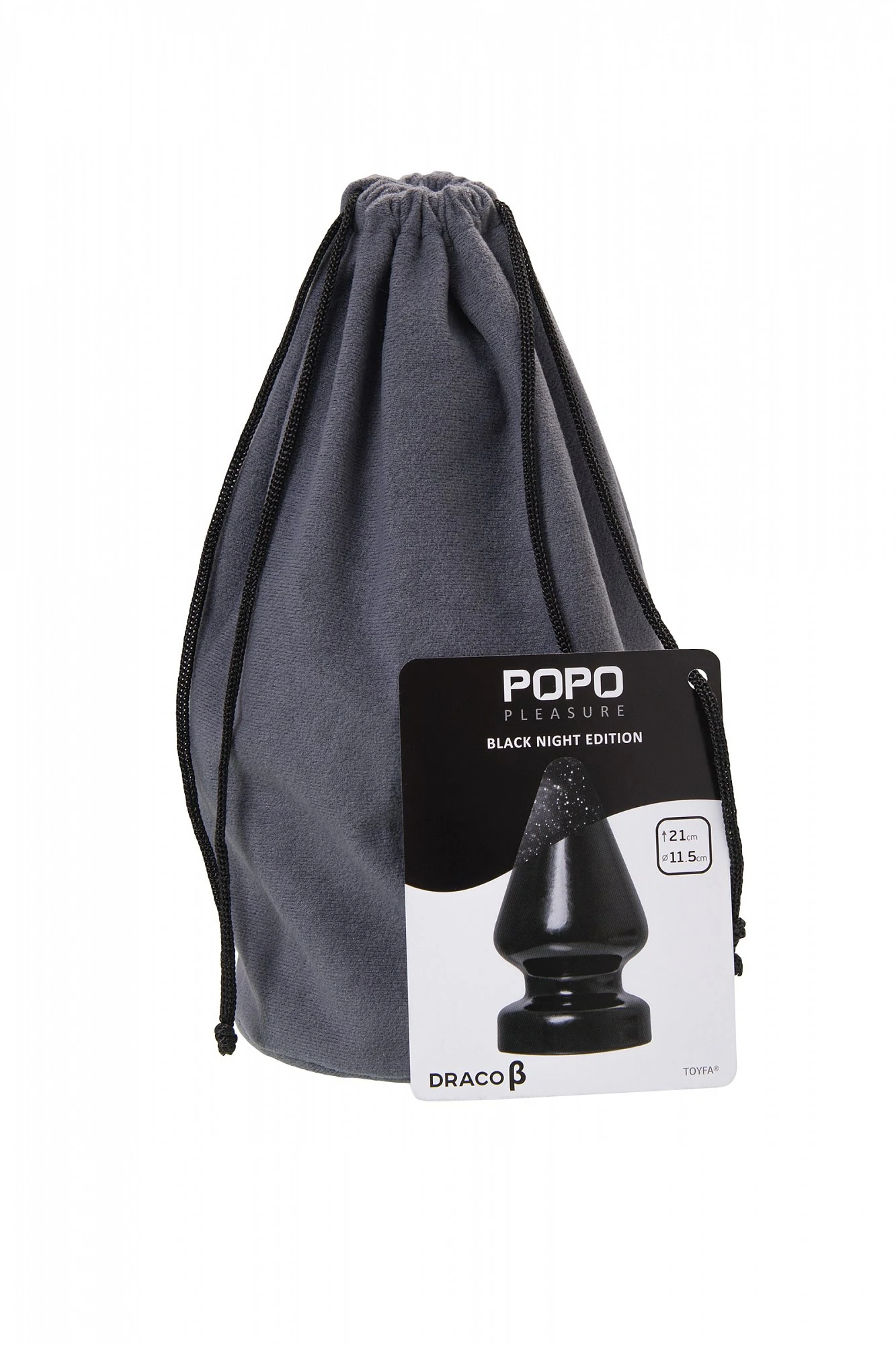 Анальная втулка Popo Draco имеет двухслойную структуру: под скользкой блестящей плотной поверхностью находится гелеобразный материал из эластичного упругого полимера. Такая конструкция обеспечивает изменение формы при деформации, адаптивность при введении, увеличивает вероятность безопасного использования. Зауженный кончик втулки обеспечивает комфортное введение, а конусообразная форма позволяет постепенно растягивать мышцы. Оболочка из эластичного полимера бесшовная, прочная и сразу восстанавливает форму, удерживая гелеобразный материал внутри. Шейка втулки тоньше основания, что обеспечивает хорошую фиксацию. Снизу форма закрыта вклеенной устойчивой заглушкой. Вместе с игрушкой допускается использование лубриканта на любой основе (водной, силиконовой, масляной). Мягкая упаковка позволяет хранить изделие анонимно, не привлекая внимания. Размер: общая длина 21 см, рабочая длина 17,5 см, диаметр 11,5 см.