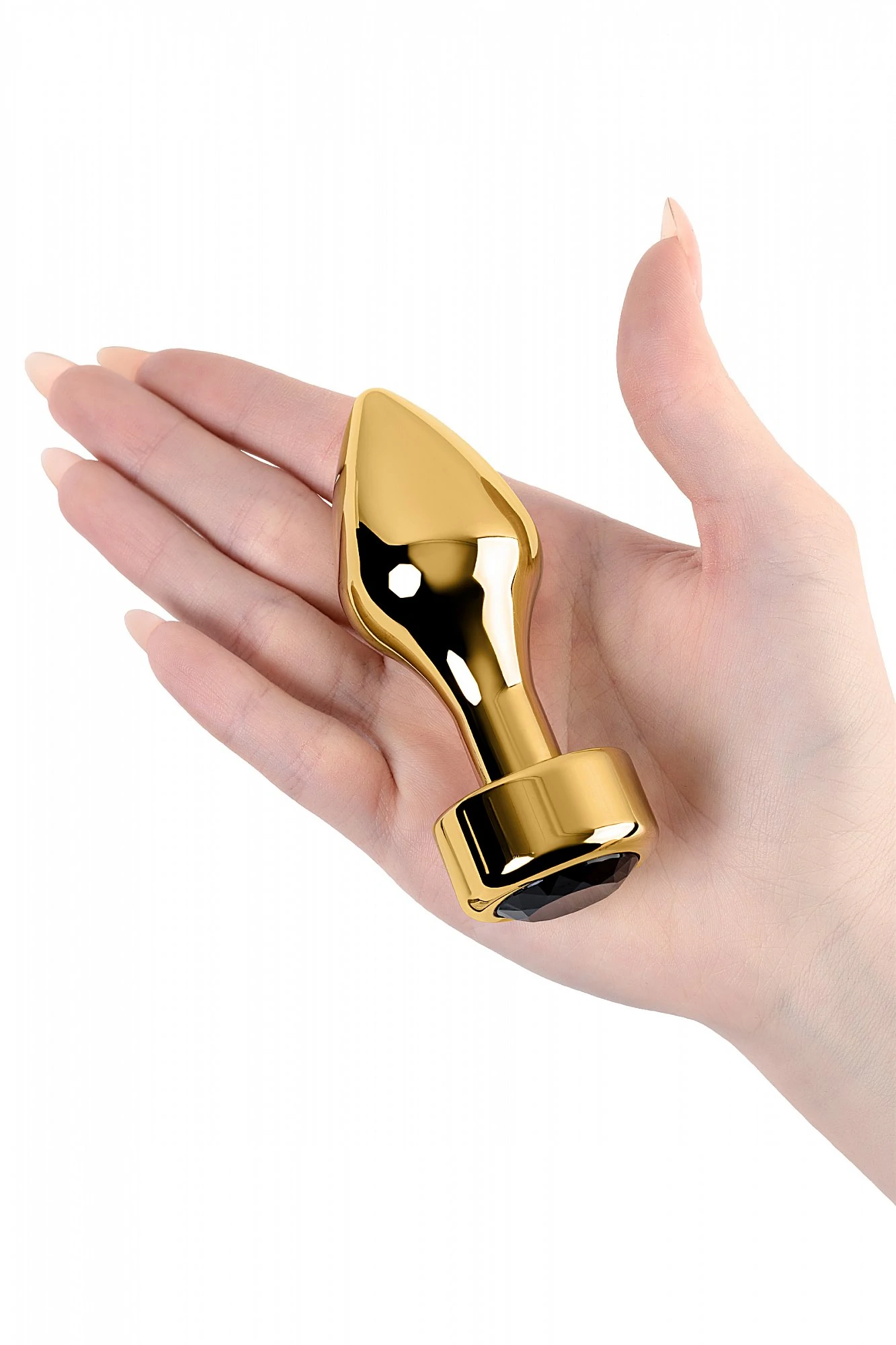 Золотистая втулка-пуля среднего размера со стразом цвета турмалин. Удобно вводится и удерживается внутри. Широкий ограничитель добавляет уверенности в том, что она не войдет слишком глубоко. Вес: 130 гр. Размер: общая длина 9.5 см, рабочая длина 7.5 см, диаметр 3.5 см.
