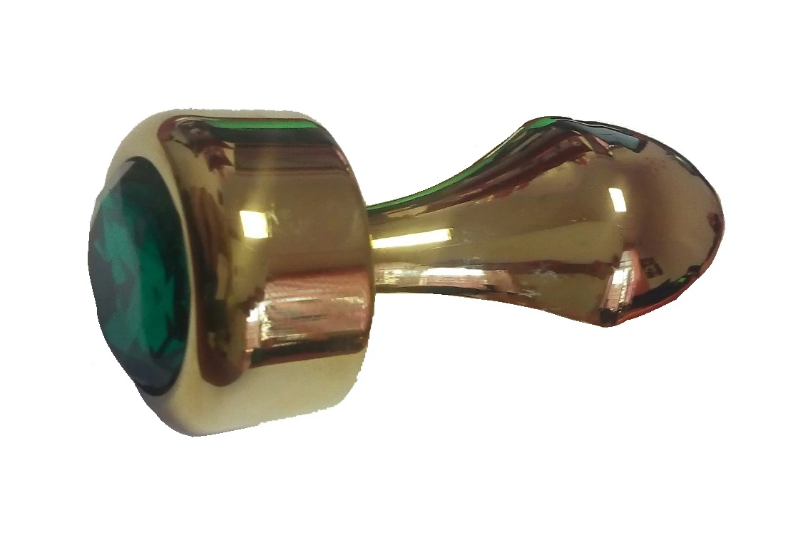Анальная втулка золотистого цвета, украшенная зеленым кристаллом. Размер: длина 7,8 см, диаметр 2,9 см. Для более комфортного использования рекомендуем смазку на водной основе и очищающий спрей Clear Toy 100 мл.