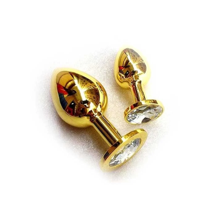 Золотая анальная пробка с шикарным белым стразом на основании - это изящный способ разнообразить интимные моменты вашей близости. Используется в качестве интимного украшения. Изготовлена из медицинской стали с позолотой. Для более комфортного использования рекомендуем приобрести смазку на водной основе и очищающий спрей Clear Toy 100 мл для обработки изделия. Размер: общая длина 7 см, рабочая 6 см, диаметр 2,8 см. Для более комфортного использования рекомендуем приобрести смазку на водной основе и очищающий спрей Clear Toy 100 мл для обработки изделия.