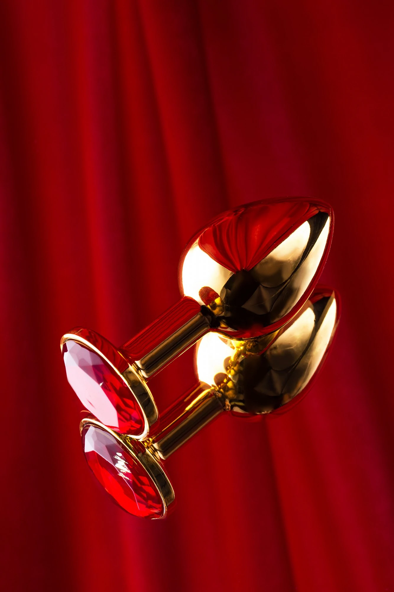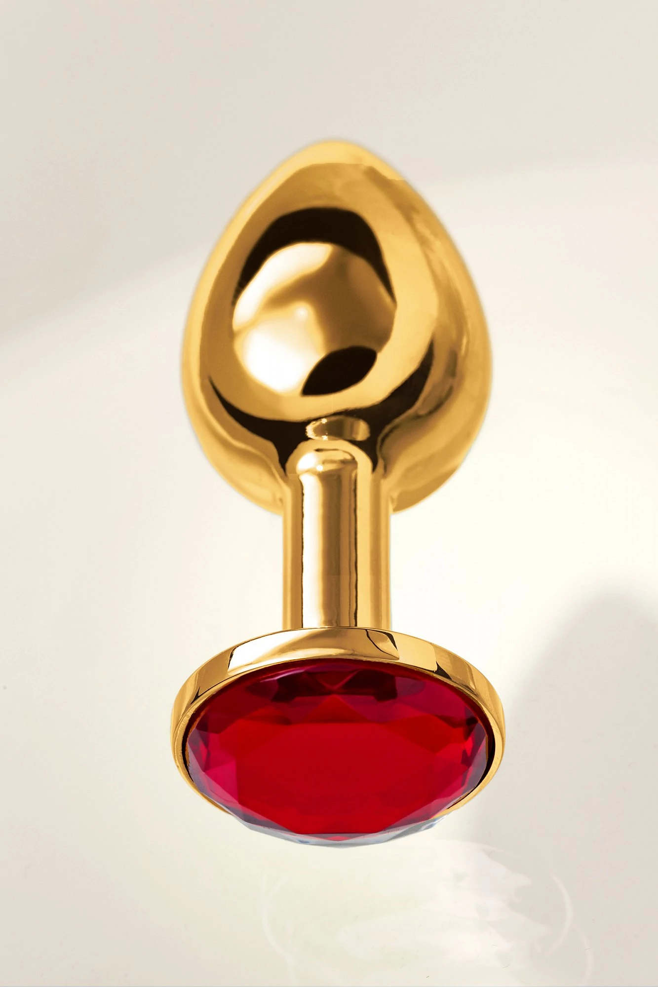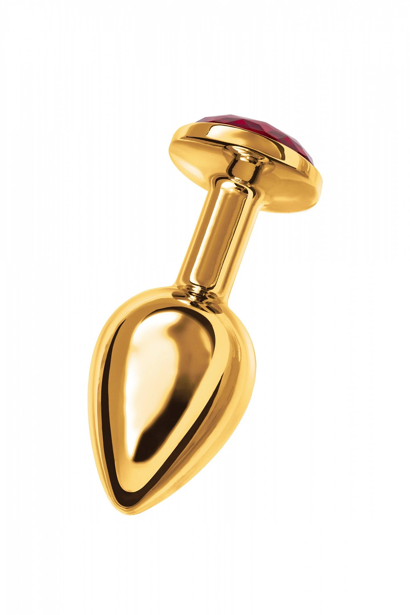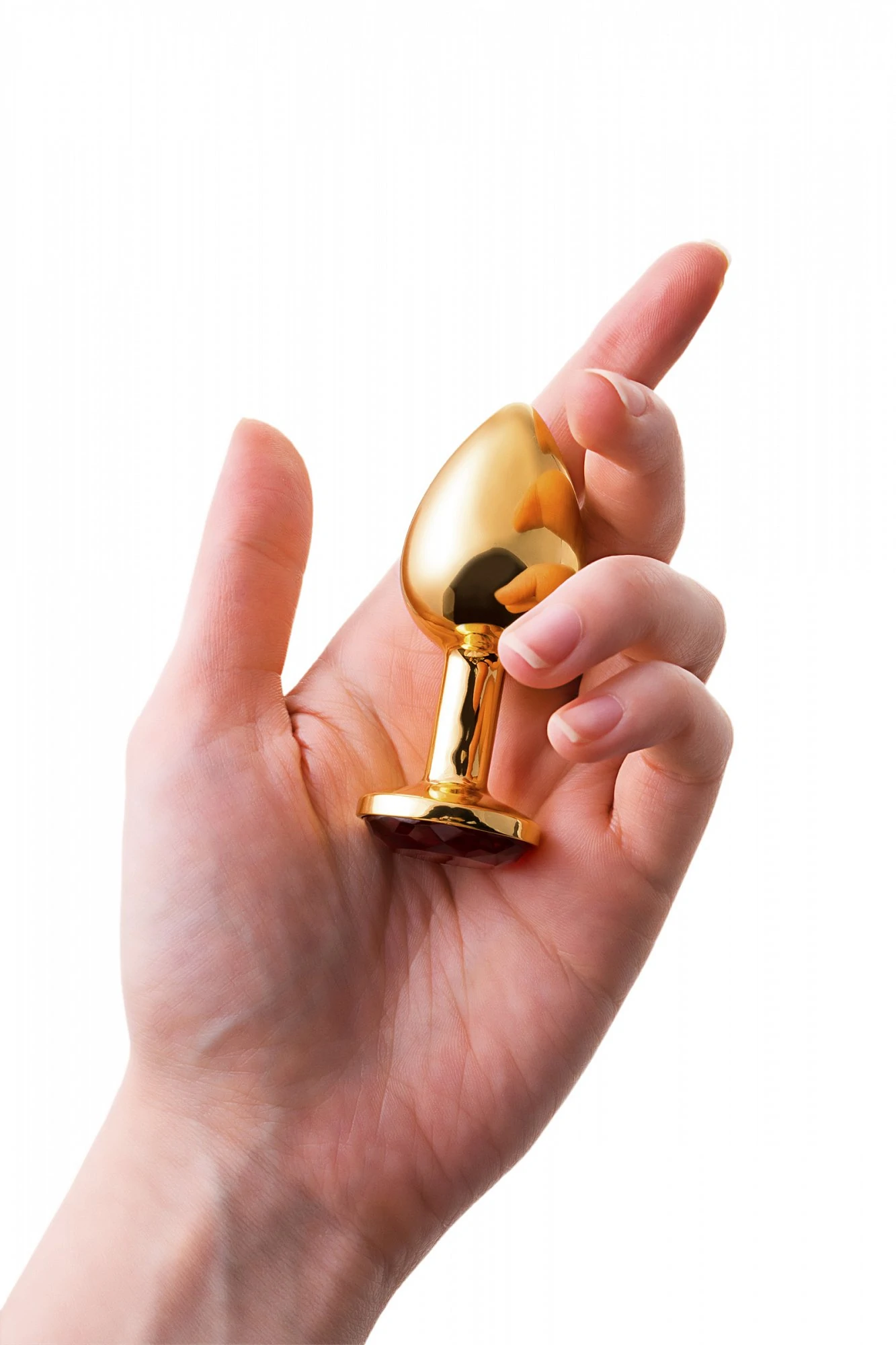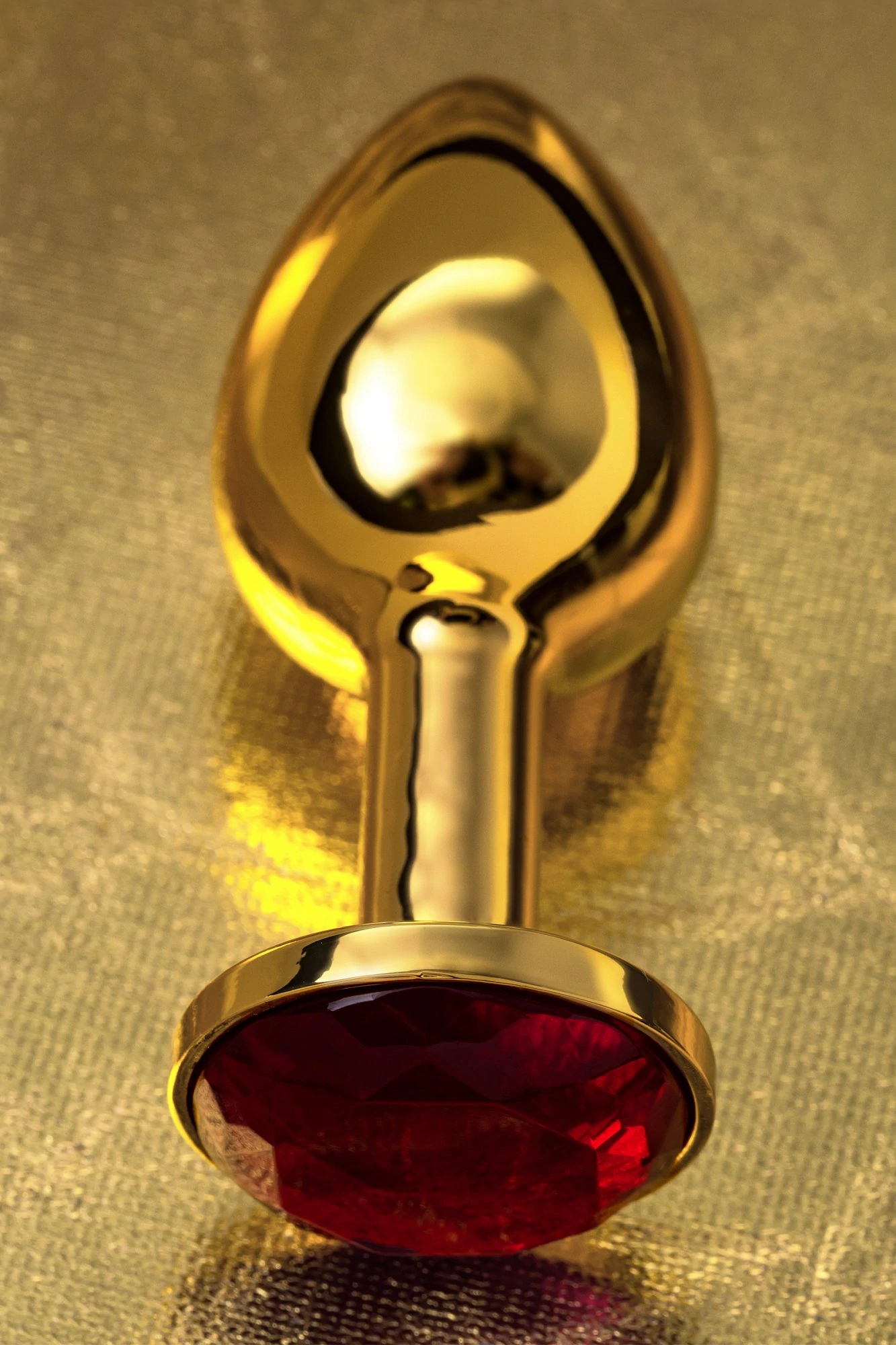 Изящная анальная втулка золотого цвета с кристаллом станет прекрасным подарком для любителей сексуальных экспериментов. Она выглядит очень изысканно, и приносит обладателю невероятное удовольствие! Гладкая поверхность способствует комфортному введению, а небольшой размер позволяет использовать втулку даже неопытным любовникам. Размер: общая длина 7,5 см, рабочая длина 6.3 см, диаметр 3 см. Вес:143 гр.