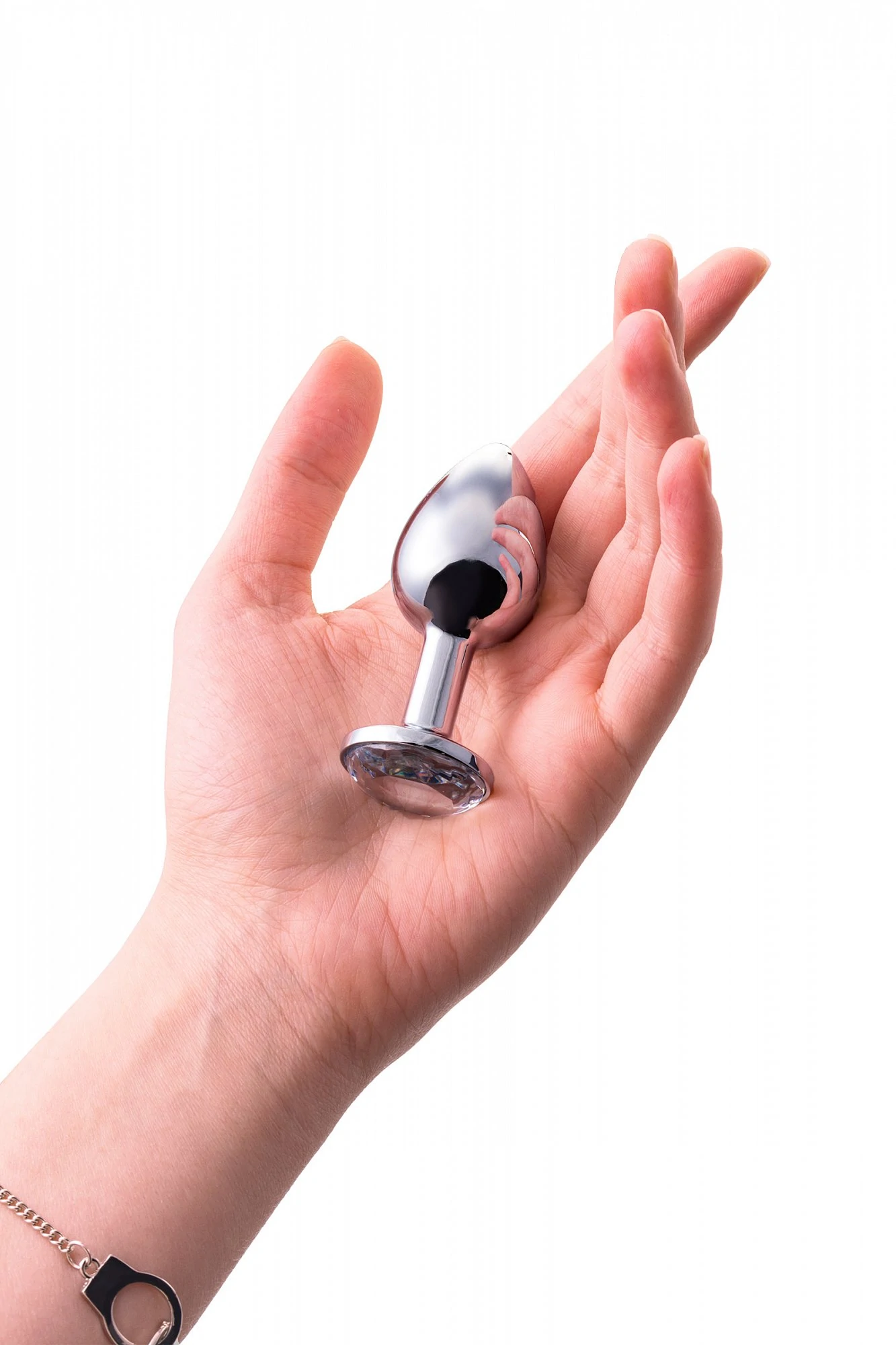 Изящная анальная втулка серебристого цвета с кристаллом станет прекрасным подарком для любителей сексуальных экспериментов. Она выглядит очень изысканно, и приносит обладателю невероятное удовольствие! Гладкая поверхность способствует комфортному введению, а небольшой размер позволяет использовать втулку даже неопытным любовникам. Для более комфортного использования рекомендуем смазку на водной основе и очищающий спрей Clear Toy 100 мл. Размер: длина 8 см, диаметр 3,4 см. Цвет: серебристый.