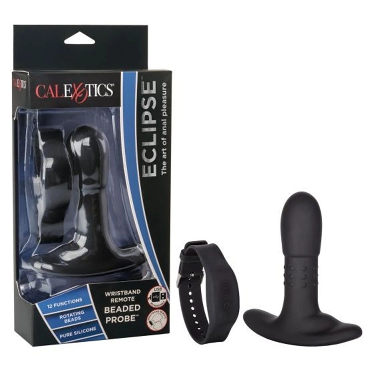Eclipse Beaded Probe - перезаряжаемый стимулятор для воздействия на нервные окончания ануса с функцией ротации. Он изготовлен из гладкого литого гигиеничного силикона, обеспечивающего удивительно приятные и гарнировано безопасные тактильные ощущения. Два мощных мотора анального стимулятора обеспечивает 12 вариантов интенсивной вибрации и синхронизированной ротации шариков! Стимулятор снабжен высокотехнологичным чипом памяти, который позволяет запомнить последний режим выбранной вибрации и включается именно с него. Для активации/дезактивации нажмите кнопку включения и удерживайте 3 секунды, пока не появится красный мигающий огонек. Стимулятор заряжается через специальный аккумуляторный USB кабель, зарядка идет 90 минут, беспрерывная работа 40 минут. Размер: длина 12,75 см, длина рабочей части 10,25 см, диаметр 3,25 см. Цвет черный. Для более комфортного использования рекомендуем приобрести смазку на водной основе и очищающий спрей Clear Toy 100 мл для обработки изделия.