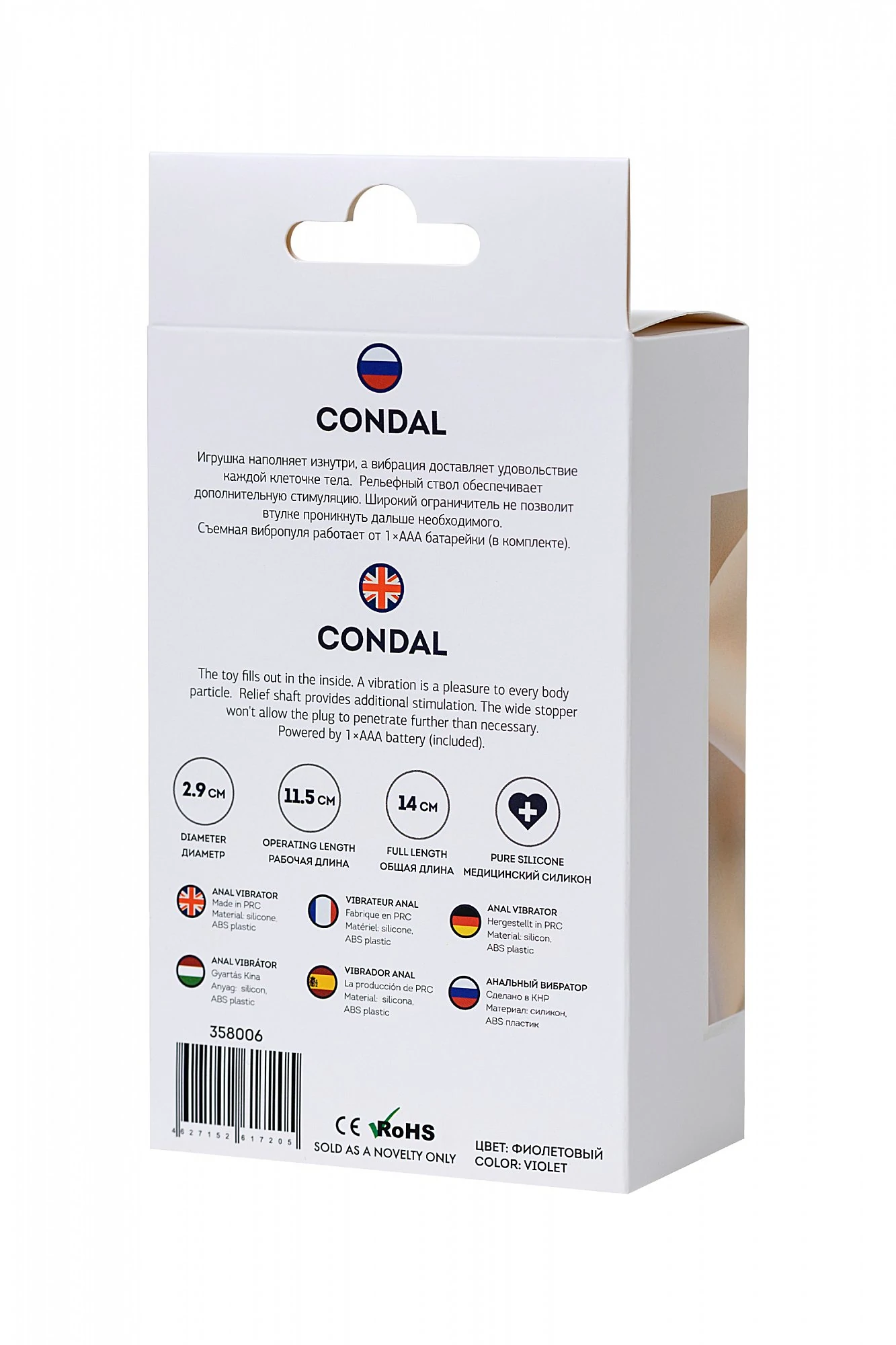Condal Игрушка наполняет изнутри, а вибрация доставляет удовольствие каждой клеточке тела. Рельефный ствол обеспечивает дополнительную стимуляцию. Широкий ограничитель не позволит втулке проникнуть дальше необходимого. Съемная вибропуля работает от 1×ААА батарейки (в комплекте).