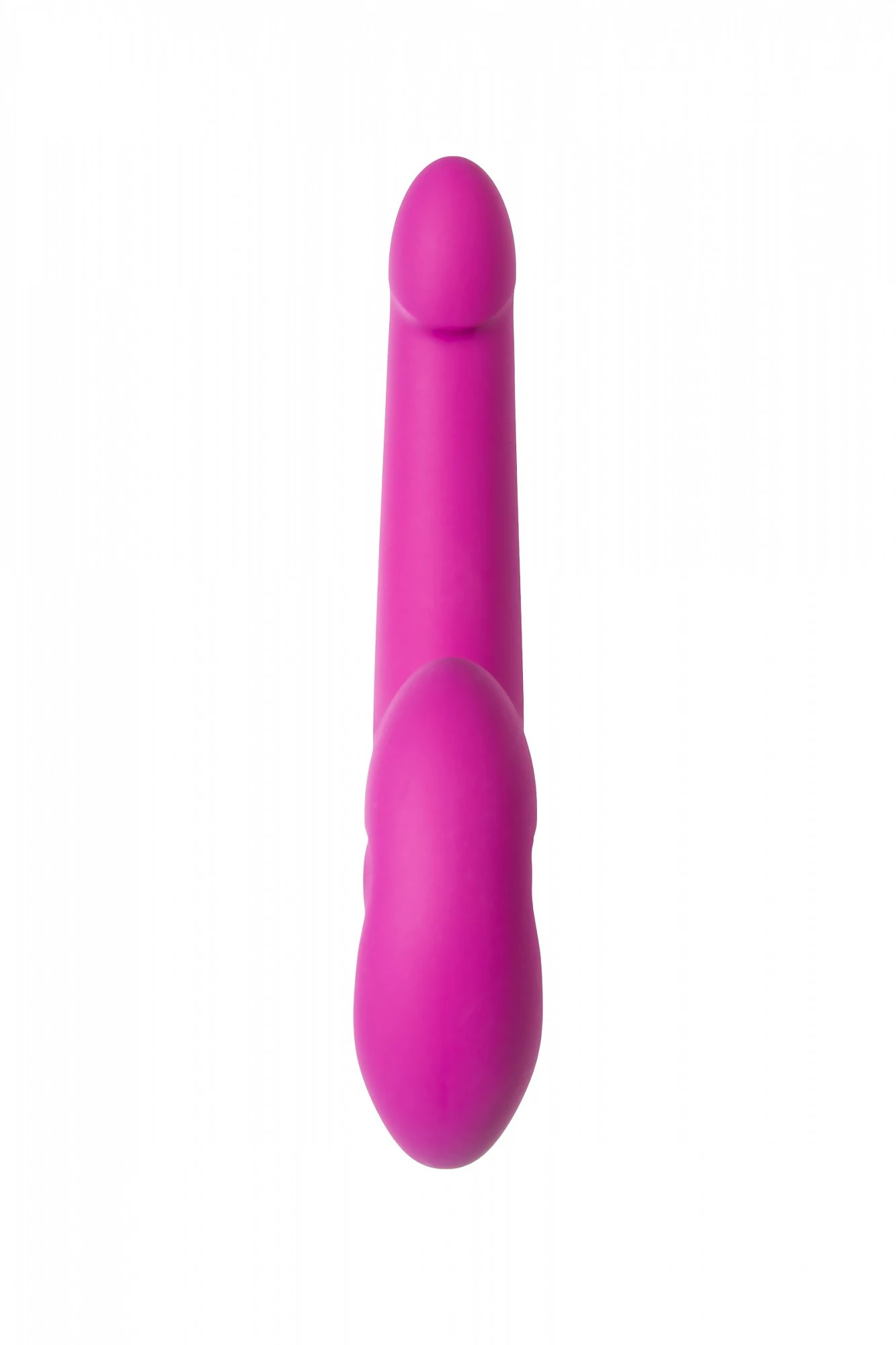 Безремневой двойной страпон облегченная версия полюбившегося страпона Share. Легче прежней версии и отлично сбалансирован, поэтому наконечник остается вертикальным во время игры. Кроме того, облегченную версию гораздо удобнее удерживать мышцами тазового дна. Полная свобода движений и стимуляция обоих партнеров – отличный эксперимент для смены ролей. Рабочая часть имеет анатомическую форму, приближенную к реальному пенису – выраженная головка и упругий кончик, который упирается в зону G. Длина рабочей части 16,5 см. Вторая часть предназначена для ласк активного партнера, длина 15,5 см. Изгиб и выпуклый рельеф удерживает игрушку внутри и соприкасается с двумя эрогенными точками активной партнерши – клитором и точкой G. Девушка может сама контролировать свой оргазм. Благодаря ограничителю в средней части игрушки использовать страпон можно и для анального проникновения.
