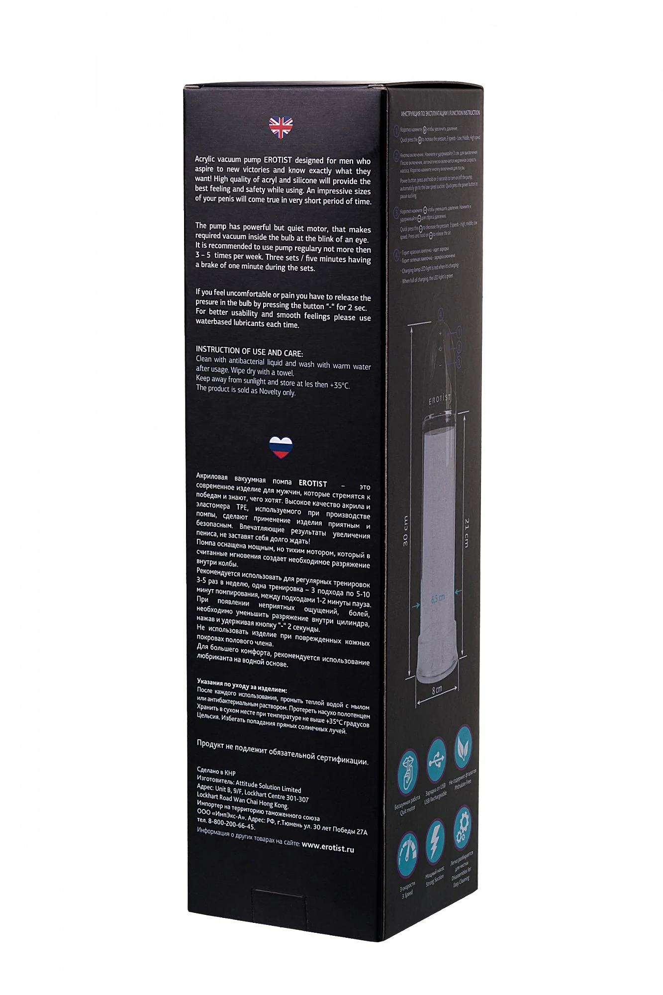 Автоматическая вакуумная помпа оснащена мощным, но тихим мотором, который в считанные мгновения создает разрежение внутри колбы. Заряжается от USB. Мощный насос. Размер: длина 21 см, диаметр 8 см. Рекомендуем приобрести крем Крем Big Pen – для увеличения полового члена 50 гр.