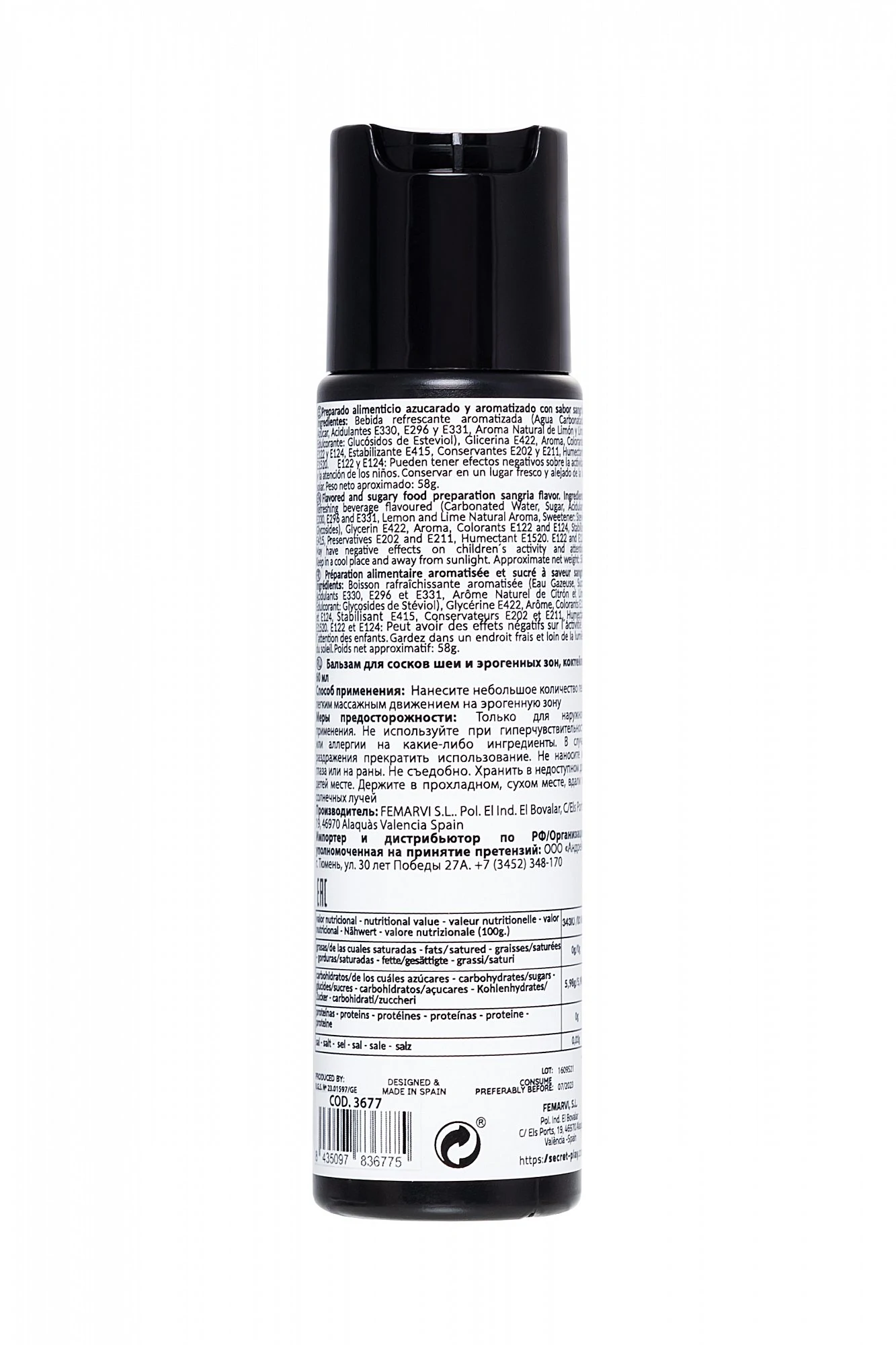 Безалкогольный лубрикант на водной основе от Secret Play со вкусом сангрии идеально подходит не только для проникновения, но и для оральных ласк и стимулирования эрогенных зон. Интимный гель на 100% съедобен и содержит 0,0% спирта. Необычный, слегка сладкий вкус и аромат дополнят сексуальную игру, с ним путешествовать по телу, облизывая и целуя эрогенные зоны, соски, шею, живот, станет намного интереснее. Кремообразная текстура этого геля обладает превосходными смазочными свойствами. Гель очарует своим восхитительным вкусом и ароматом солнечной сангрии – будет трудно устоять от соблазна совместить любовные игры с этим лубрикантом.