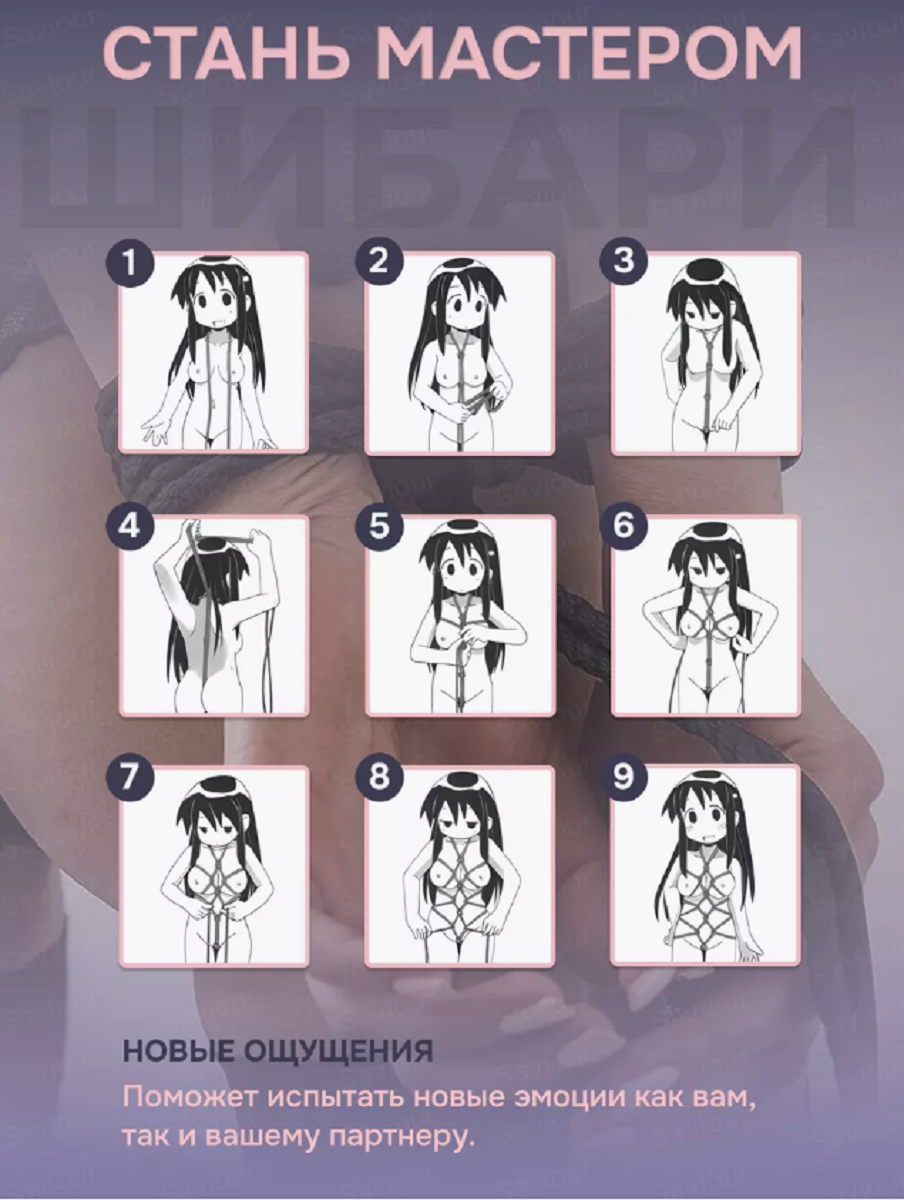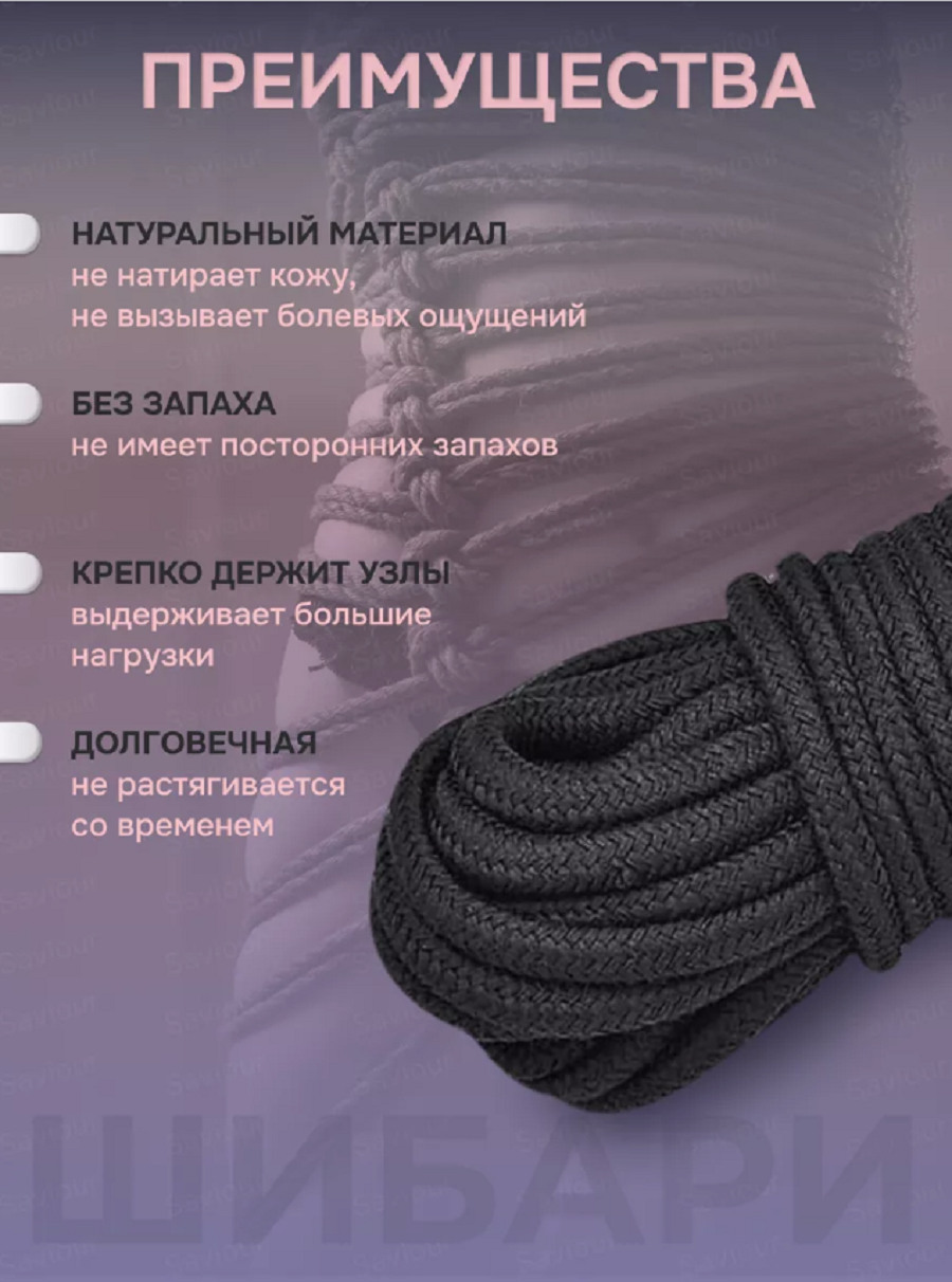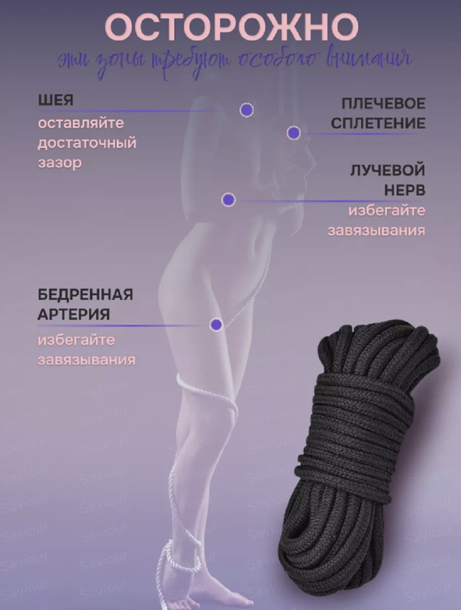Бондаж для связывания - подходит как для новичков для простого связывания рук и ног, так и для истинных ценителей рабства. Приятный шелковистый на ощупь, не будет повреждать и стягивать вашу кожу во время страстных игр. Длина 9 м.