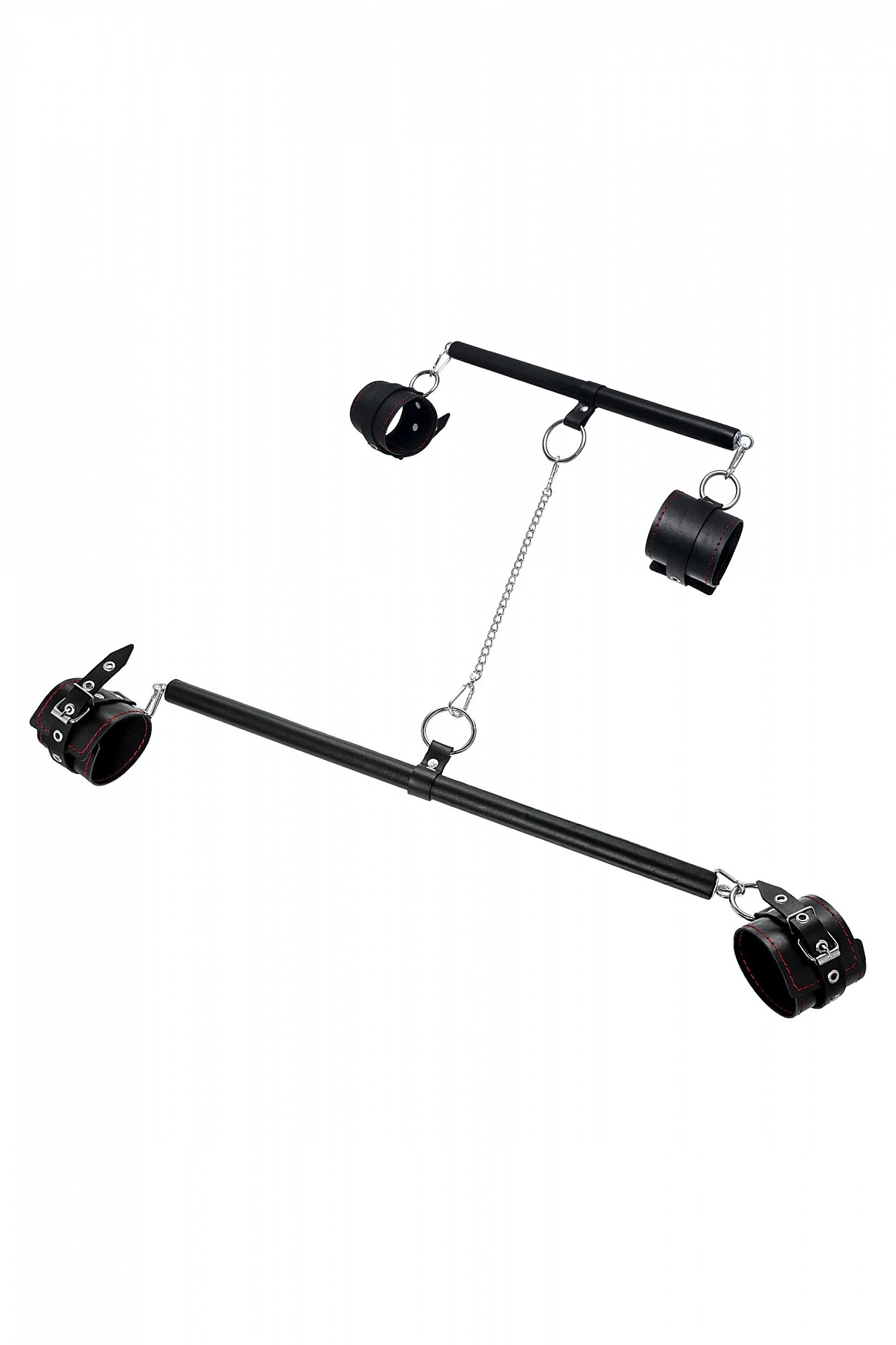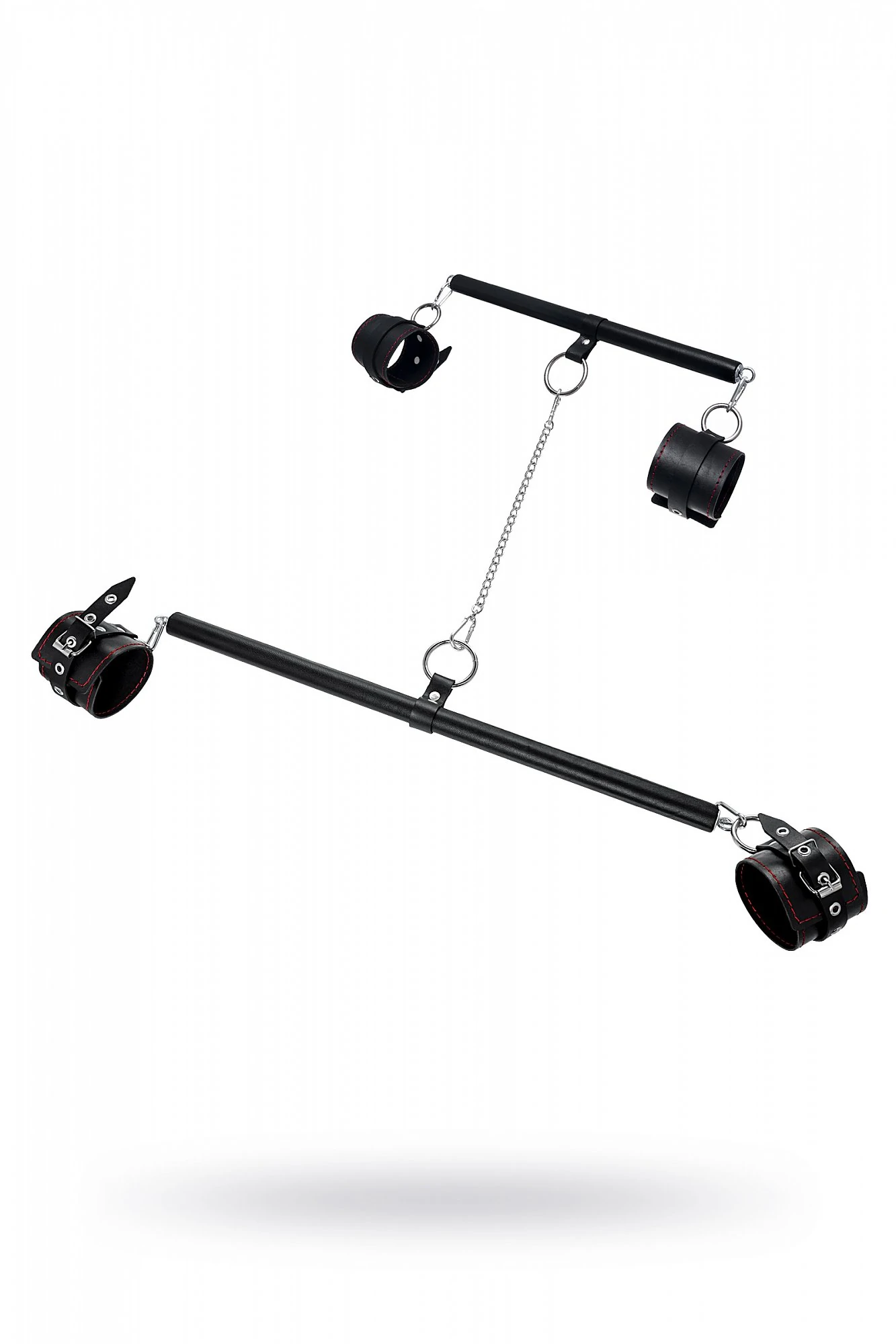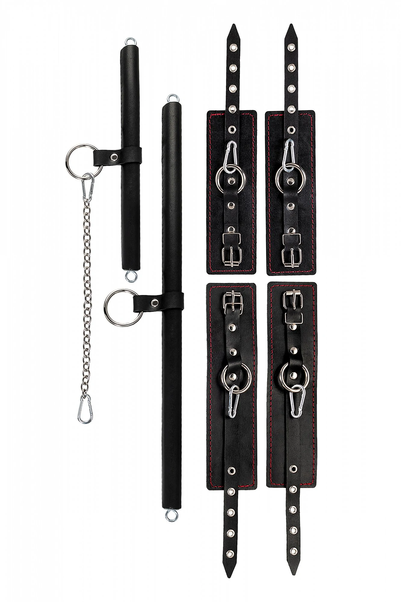 Набор для бандажа состоит из большой и маленькой распорки с четырьмя точками крепления и пары оков и наручников, всё это в фирменной деревянной коробке Pecado BDSM. С этим набором расширить возможности и способы фиксации проще простого! Варианты и комбинации ограничения свободы партнера зависят от вашей фантазии и желаний. Распорка позволяет зафиксировать ноги и руки партнера в широко разведенной позиции. Частичное обездвиживание и невозможность двигать руками или ногами дают вам полную власть над партнером – взрослые игры для взрослых. Кольцо посередине распорки позволяет использовать дополнительные аксессуары, либо приковать партнера к кровати или другому предмету и экспериментировать с позициями и ощущениями. Материал: распорка - дерево, обшитое натуральной кожей, оковы - натуральная кожа. Цвет черный. Размер: длина распорки 30 и 50 см, ширина оков 6,5 см, длина оков 25 см, четыре точки фиксации –два кольца и четыре карабина.