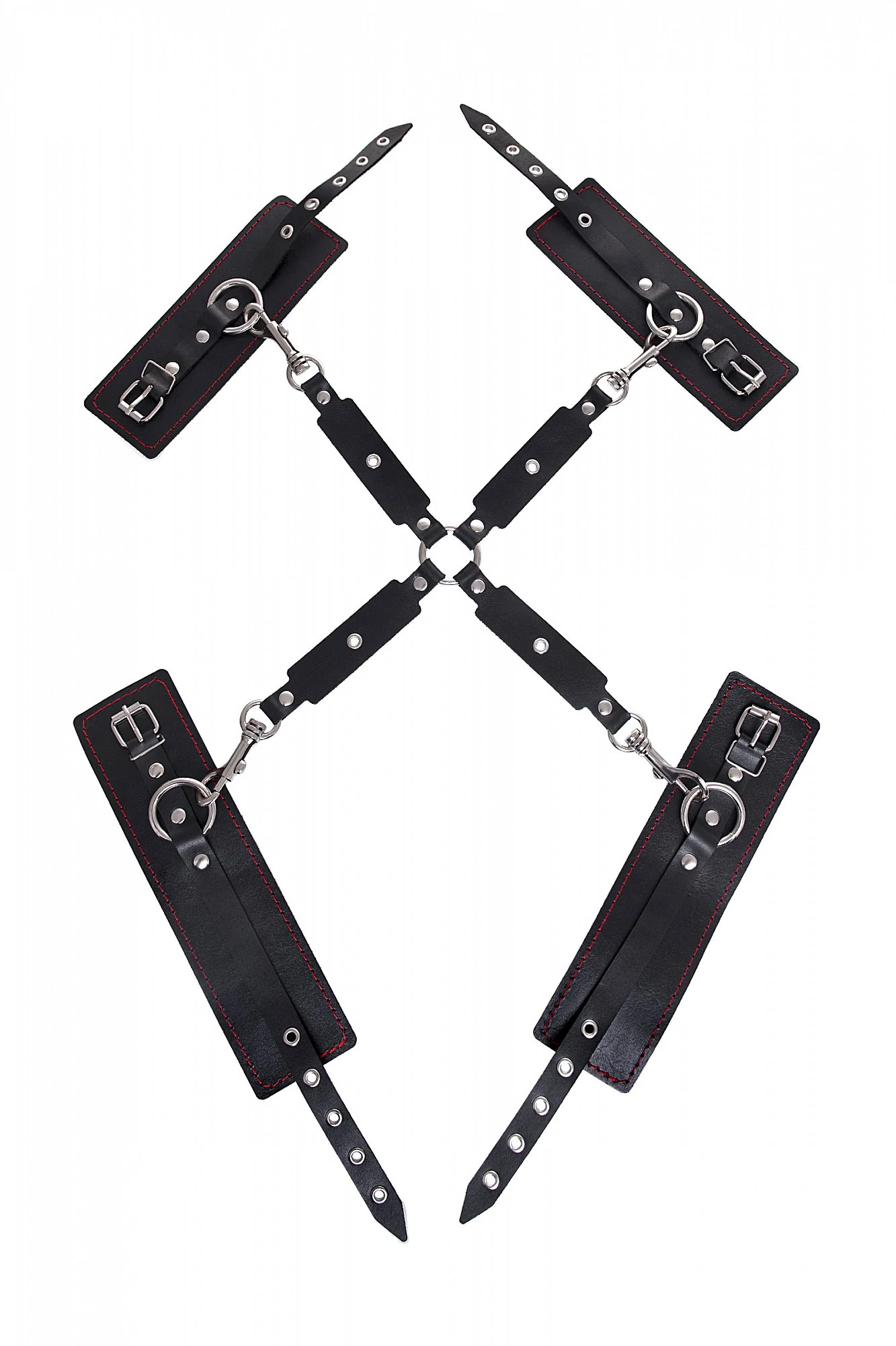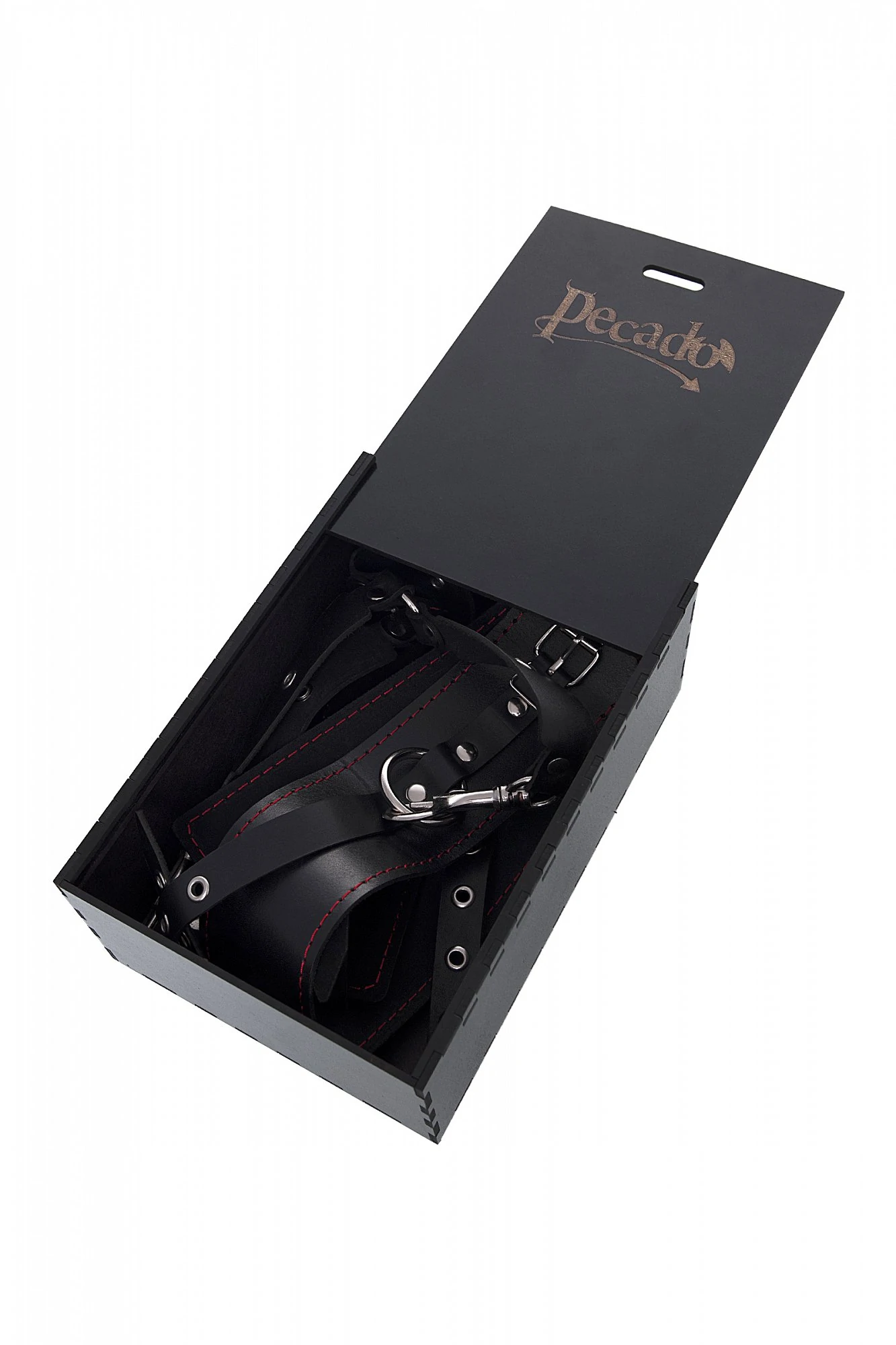 С набором от Pecado BDSM воплощайте в жизнь смелые сексуальные фантазии, которые до этого момента были только мечтой. Хотите избавиться от искушения? Просто поддайтесь ему с Pecado BDSM! Комплект для бондажа состоит из четырёх кожаных ремешков в виде крестовины, с карабинами на концах, пары оков и пары наручников, всё это в фирменной деревянной коробке Pecado BDSM. Карабины позволяют легко фиксировать оковы, наручники и другие аксессуары для ограничения движений партнера. Однослойные кожаные наручники и оковы с контрастной строчкой красного цвета могут стать стильным аксессуаром на свободных руках, но могут послужить вашим целям и фантазиям по своему прямому назначению. С этим комплектом расширить возможности и способы фиксации проще простого! Варианты и комбинации ограничения свободы партнера зависят только от вашей фантазии и желания. Ширина наручников 6,5 см, длина наручников 20 см. Ширина оков 6,5 см, длина оков - 25 см. Общая длина крестовины - 45 см.