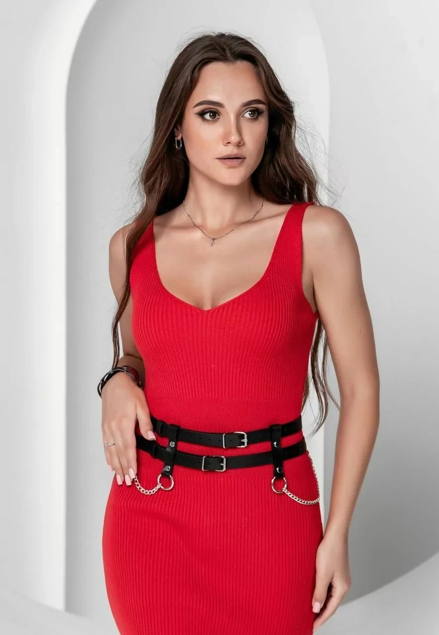 Образ созданный с помощью этой баски с цепочками многообразен от стильного и смелого до нежного и безумно сексуального. Она шикарно сочетается с любыми нарядами: это может быть строгий костюм с приталенной рубашкой, а быть может и вечернее платье! И так-же с неформальными нарядами эта баска станет ярким атрибутом, подчеркивающим ваш нрав и темперамент. Этот баска отлично смотрится на обнаженном теле или на нижнем белье. Он создана для того, чтобы дарить любовь, нежность и ласку, удивлять и радовать. Ни один мужчина не сможет устоять перед Вами. Регулируемые ремешки обеспечат идеальную посадку практически по любой фигуре. Ширина ремешков 2,5 см. Портупея изготовлена из натуральной кожи. Размер S/M. Цвет черный.