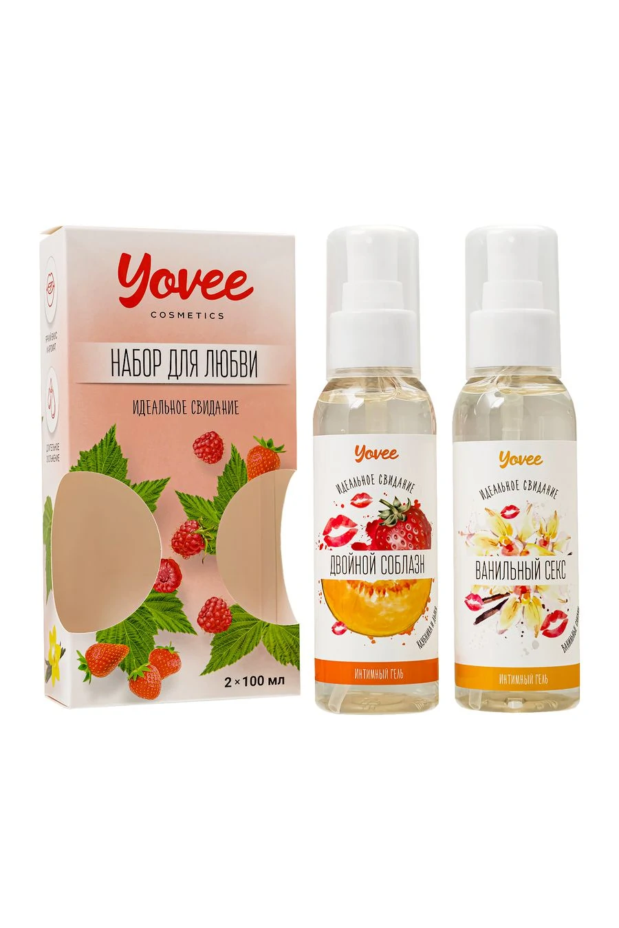 "Набор для любви" от бренда Yovee идеально подходит для эротических экспериментов. В одной упаковке два съедобных геля на водной основе. Используйте самостоятельно или создайте свой вкус, смешивая их! Несмотря на сладость, гели не содержат сахара в составе, не нарушают микрофлору и pH-баланс. Подходят как для вагинального, так и для орального секса. Совместимы со всеми видами презервативов и игрушек для взрослых. Вкус: Клубника, дыня, ванильные сливки.