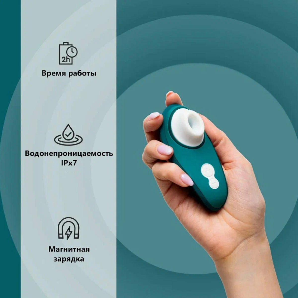 Наша запатентованная технология Pleasure Air обеспечивает бесшумную работу: приятное всасывание и нежные массирующие воздушные волны приводят к совершенно новому типу оргазма. Расслабьтесь и наслаждайтесь волнами удовольствия. Новое покрытие добавляет умопомрачительные впечатления к каждому приключению, которое вы только можете себе представить. Покрыт гипоаллергенным медицинским силиконом, мягким и приятным на ощупь. Womanizer Liberty 2 на 100% водонепроницаем и подходит для использования в душе или ванной. У Womanizer Liberty 2 есть магнитный контактный USB-порт для зарядки. Длинна 10,4 см. Цвет темно-бирюзовый. Для более комфортного использования рекомендуем приобрести смазку на водной основе и очищающий спрей Clear Toy 100 мл для обработки изделия.