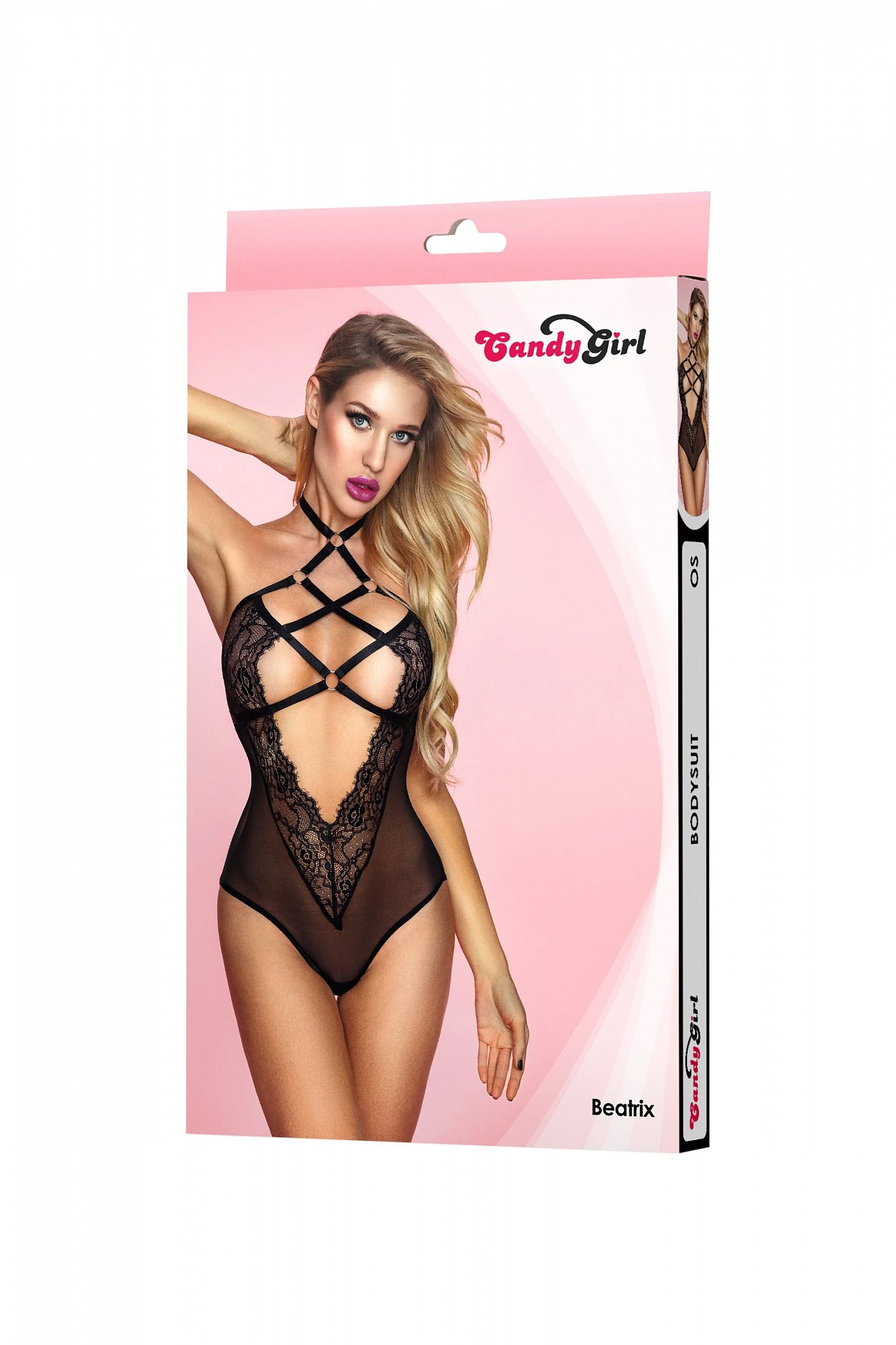 Изящный наряд Candy Girl Beatrix из эластичной сетки завораживает откровенной сексуальностью. Глубокое и широкое декольте декорировано кружевными вставками и тонкими стрепами с металлическими кольцами, которые добавляют дерзости в романтичный образ. Оголенное декольте приглашает к ласкам и поцелуям. Вид сзади создает иллюзию прикрытого тела, но благодаря полупрозрачной шелковистой сетке разглядеть пикантные места не составит труда. Боди застегивается на пару кнопок на шее и позволяет оголить грудь одним движением руки – яркий игровой момент для тебя и твоего партнера.