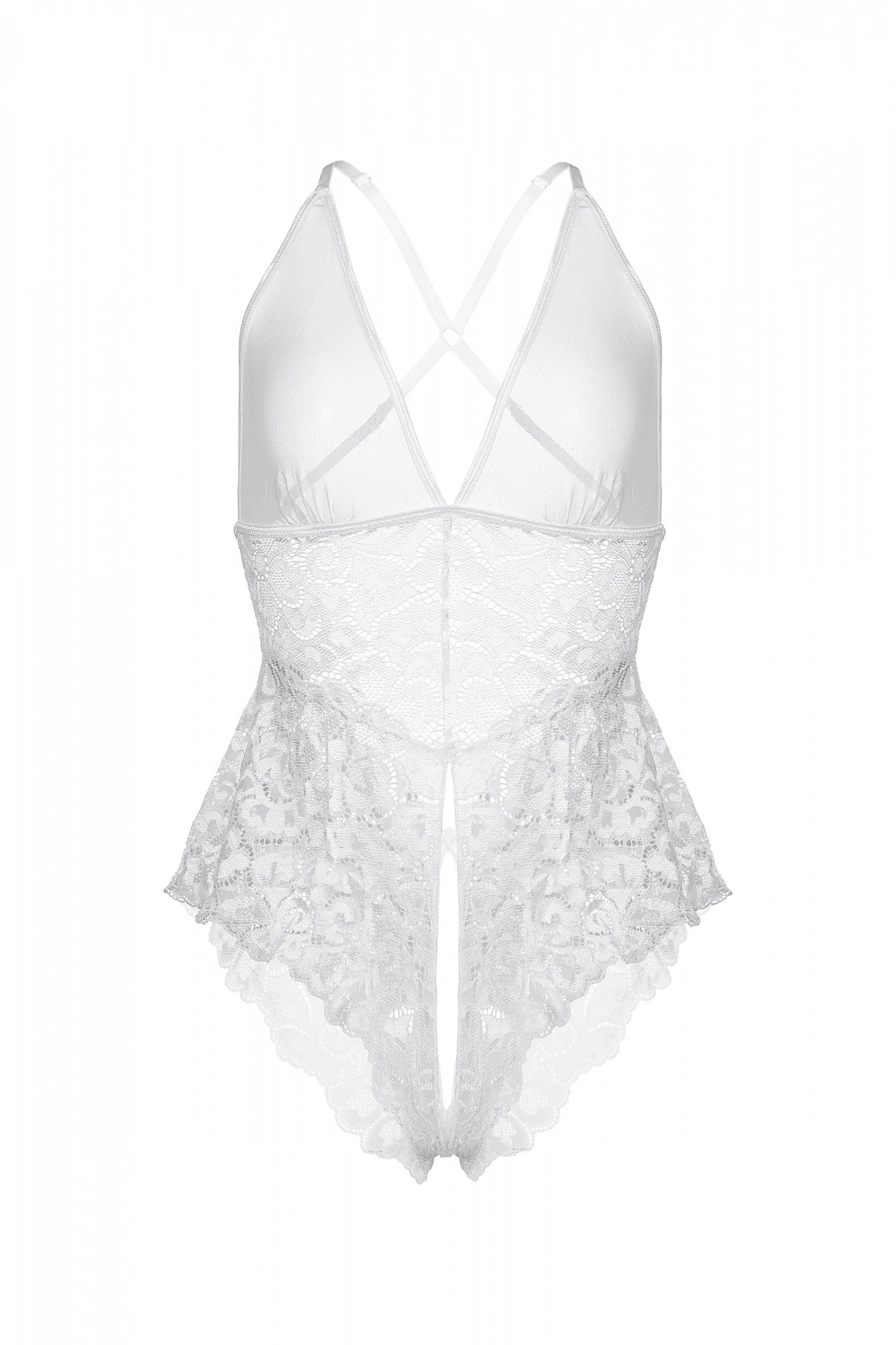 Боди Senna от Candy Girl® с прозрачным бюстом, перекрестными регулируемыми бретелями и кружевными оборками подчеркнет ваше нежное романтичное настроение. Легкий перламутровый блеск окантовки и кружева выгодно оттенит естественный цвет кожи.