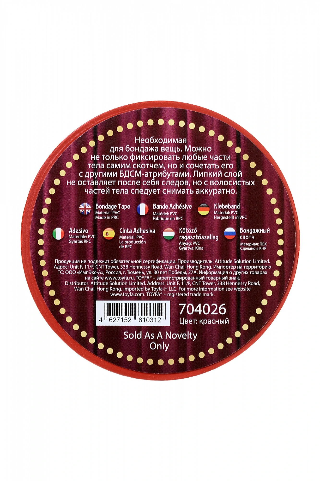 Необходимая для бондажа вещь. Можно не только фиксировать любые части тела самим скотчем, но и сочетать его с другими БДСМ-атрибутами. Липкий слой не оставляет после себя следов, но с волосистых частей тела следует снимать аккуратно. Длина 15 м, Ширина 5 см