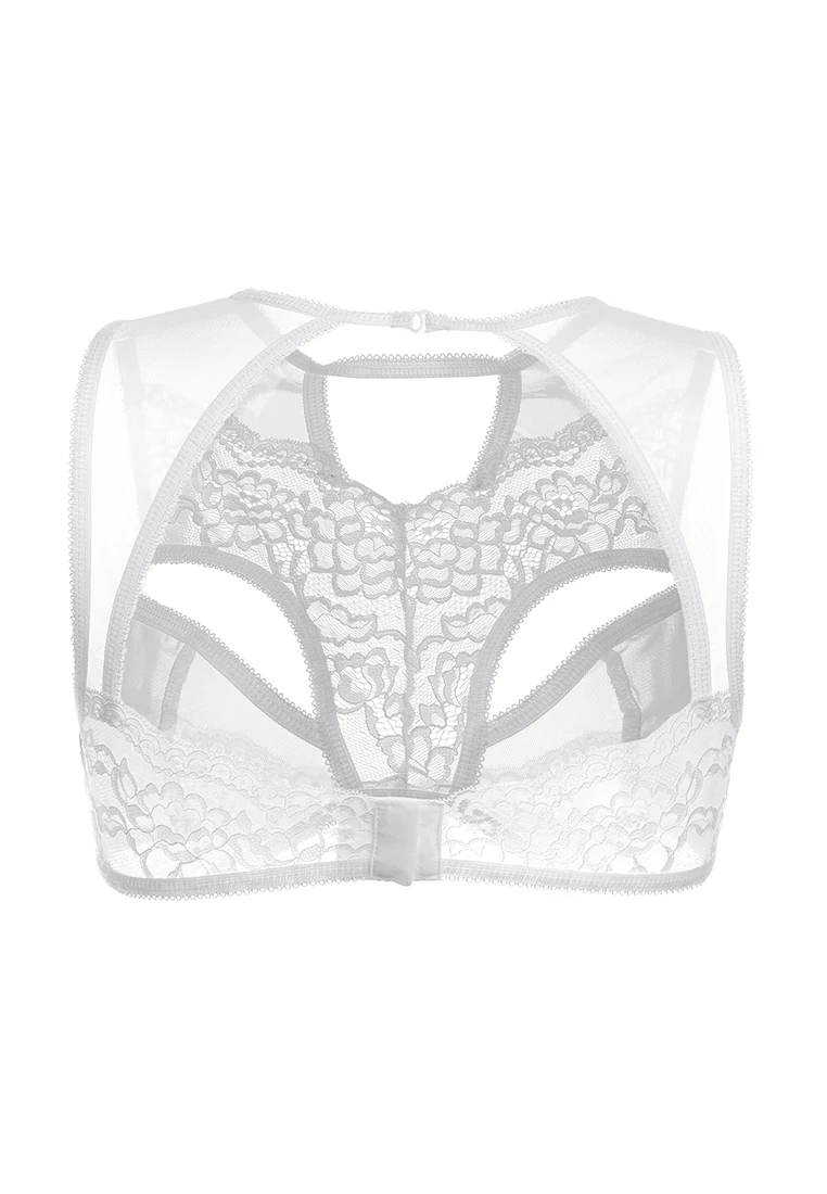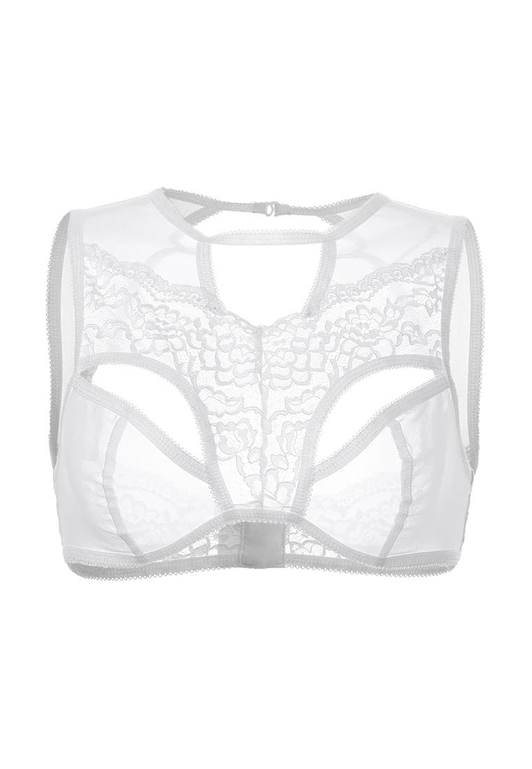 Бралетт. Мягкий топ из эластичной сетки со вставками кружева, с декоративными вырезами. Застежка на шее. Двухрядная застежка на спине.